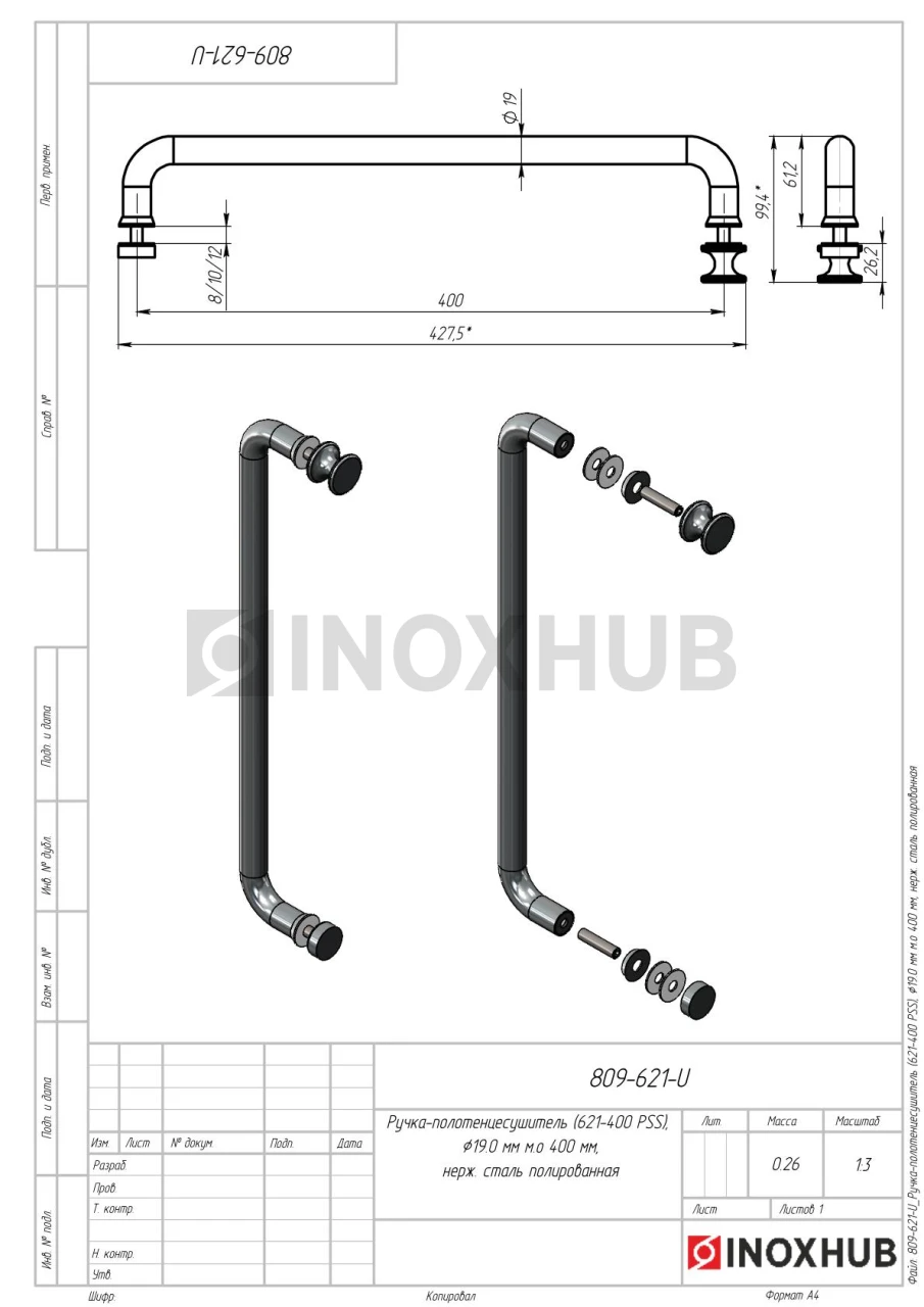 Ручка-полотенцесушитель (621-400 PSS), Ø19.0 м/о 400 мм, нерж. сталь полированная