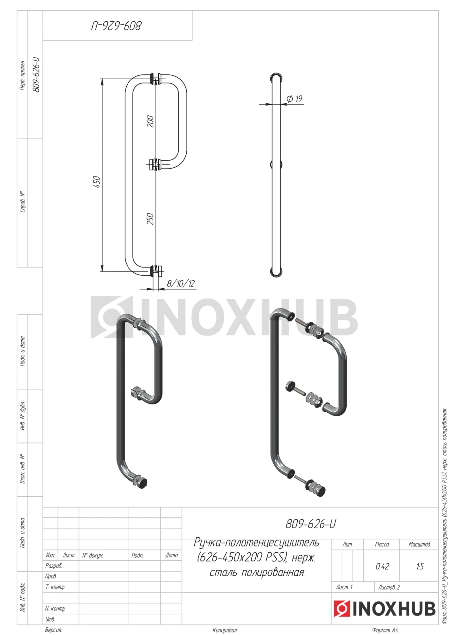 Ручка-полотенцесушитель (626-450х200 PSS), Ø25.0 450х200, нерж. сталь полированная