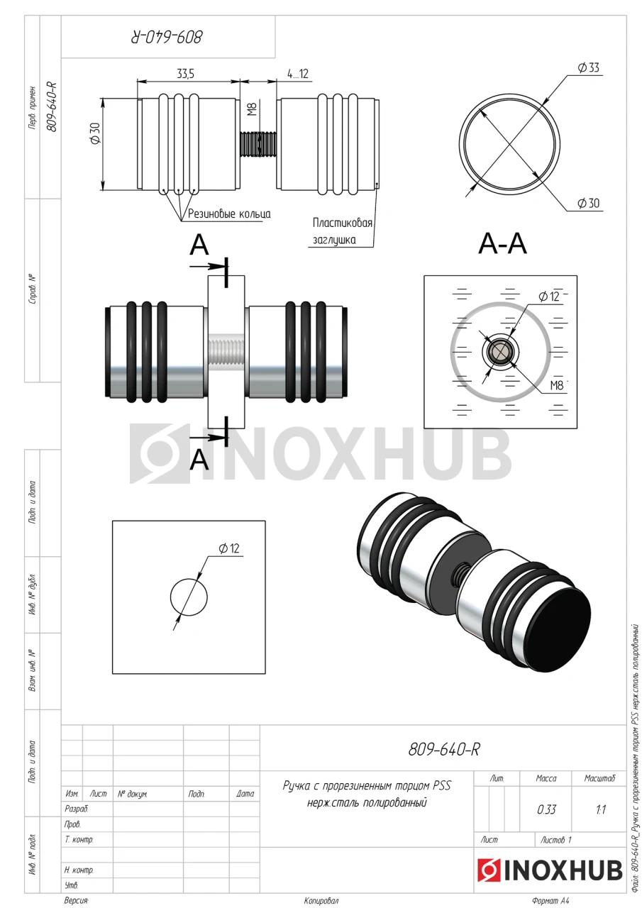 Ручка с прорезиненным торцом PSS нерж. сталь полированная