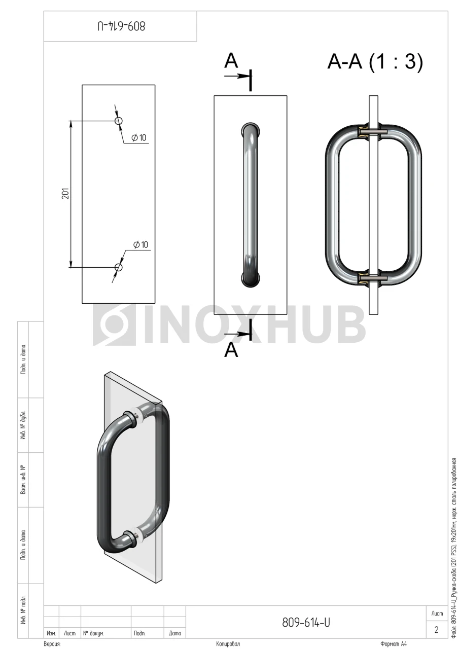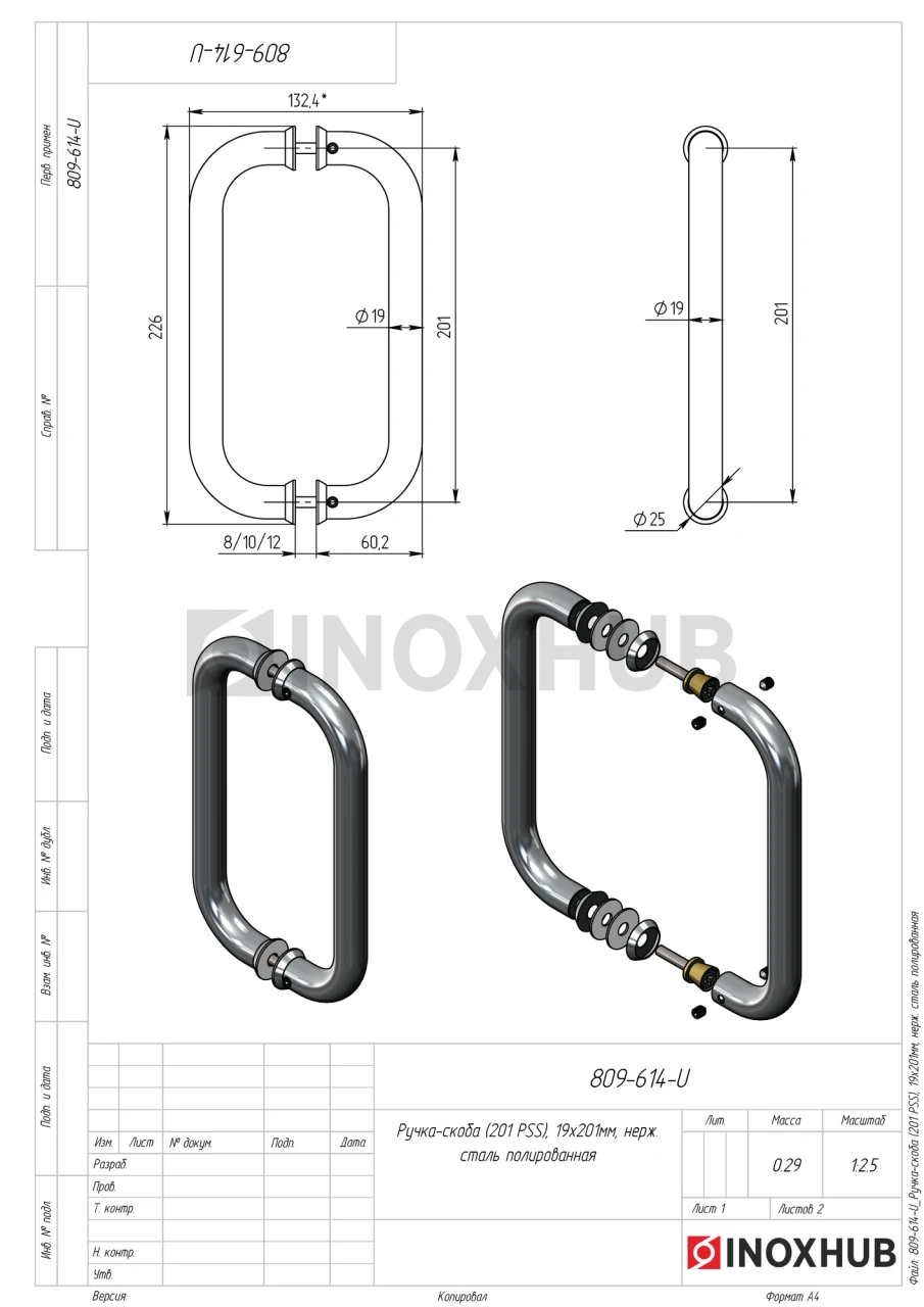 Ручка-скоба (201 PSS), 19х201мм, нерж. сталь полированная