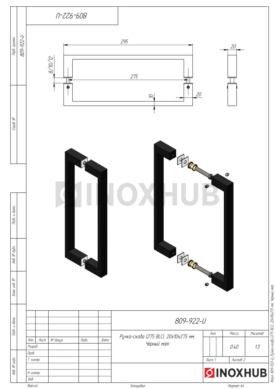 Ручка-скоба (275 BLC), 20х10х275, Черный мат