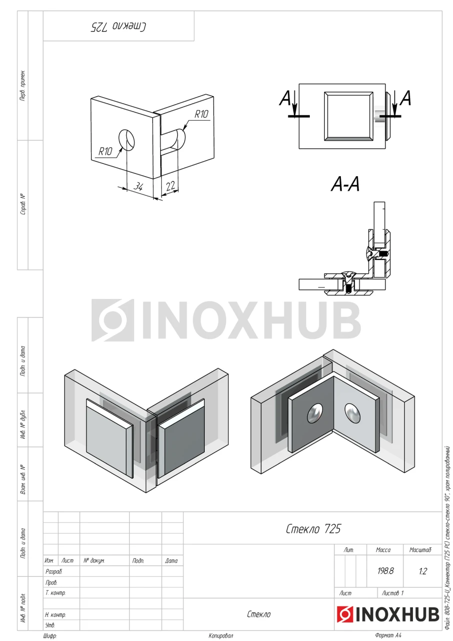 Сборка и монтаж. Коннектор состоит из трех частей — монтажная L-образная пластина с двумя отверстиями и двух прижимных пластин с втулками для винтов. Монтажная площадка фиксируется на неподвижное стекло с помощью прижимной пластины. К ней крепится устанавливаемый стеклянный модуль, зажимается оставшейся деталью элемента. Стекла надежно фиксируются между пластинами через уплотнитель шестигранными винтами.