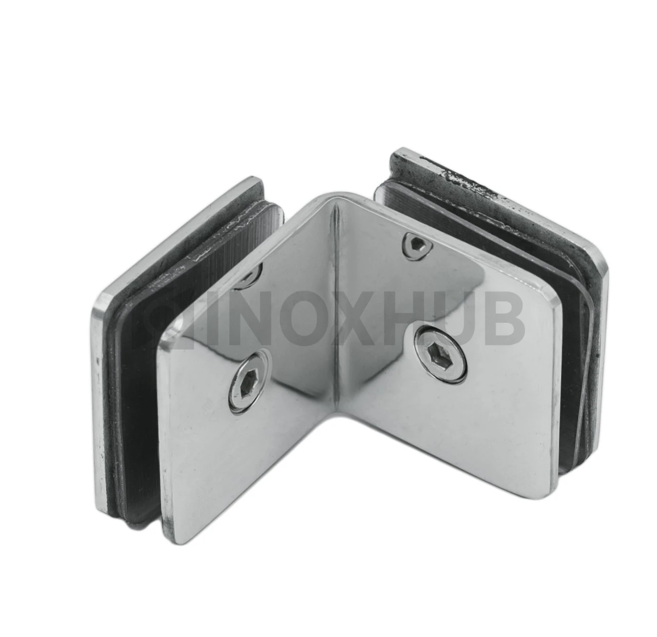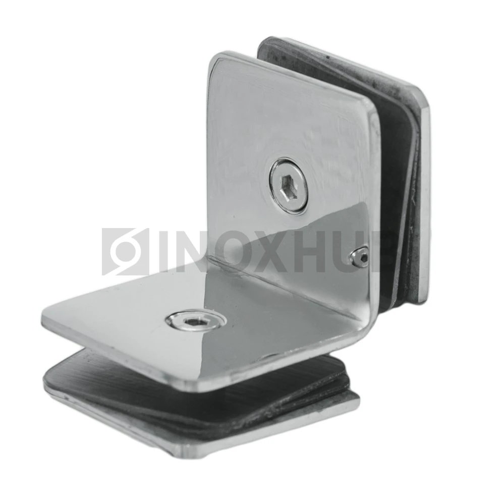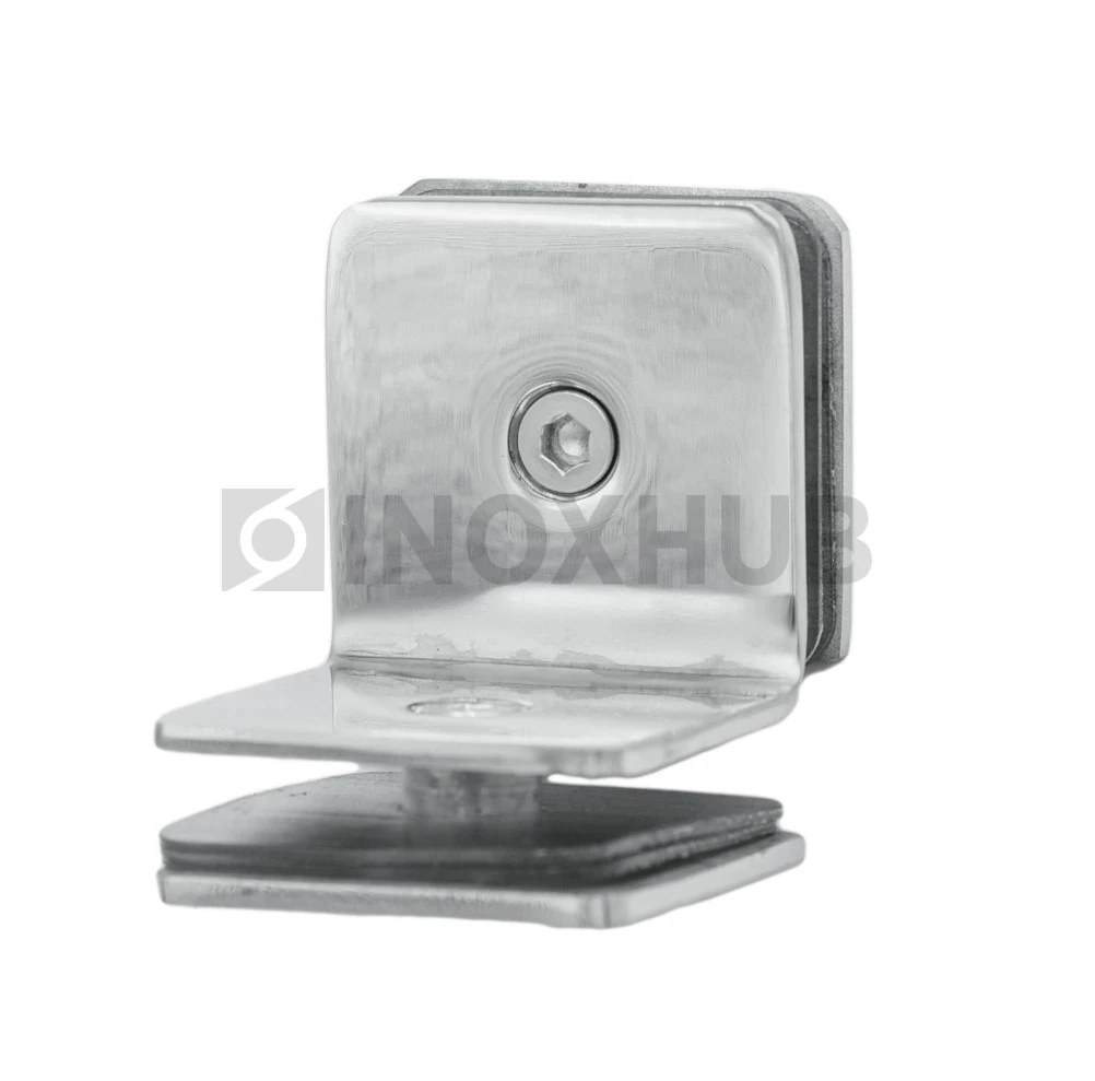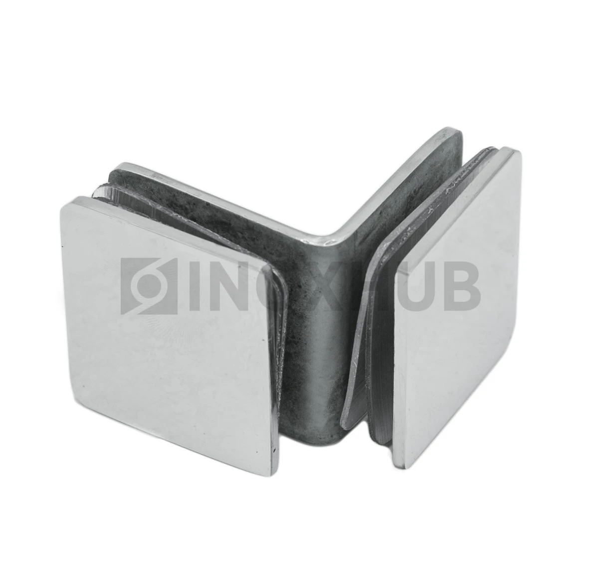 Коннектор (735 PSS) стекло-стекло 90° (без фаски), нерж. сталь полированная