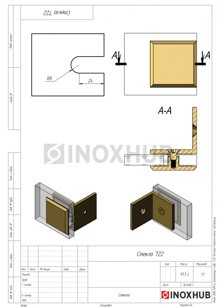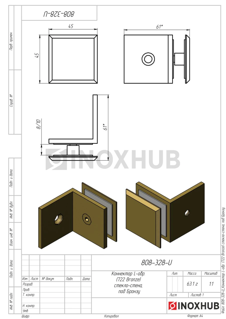Коннектор L-обр. (722 Bronze) стекло-стена, под Бронзу