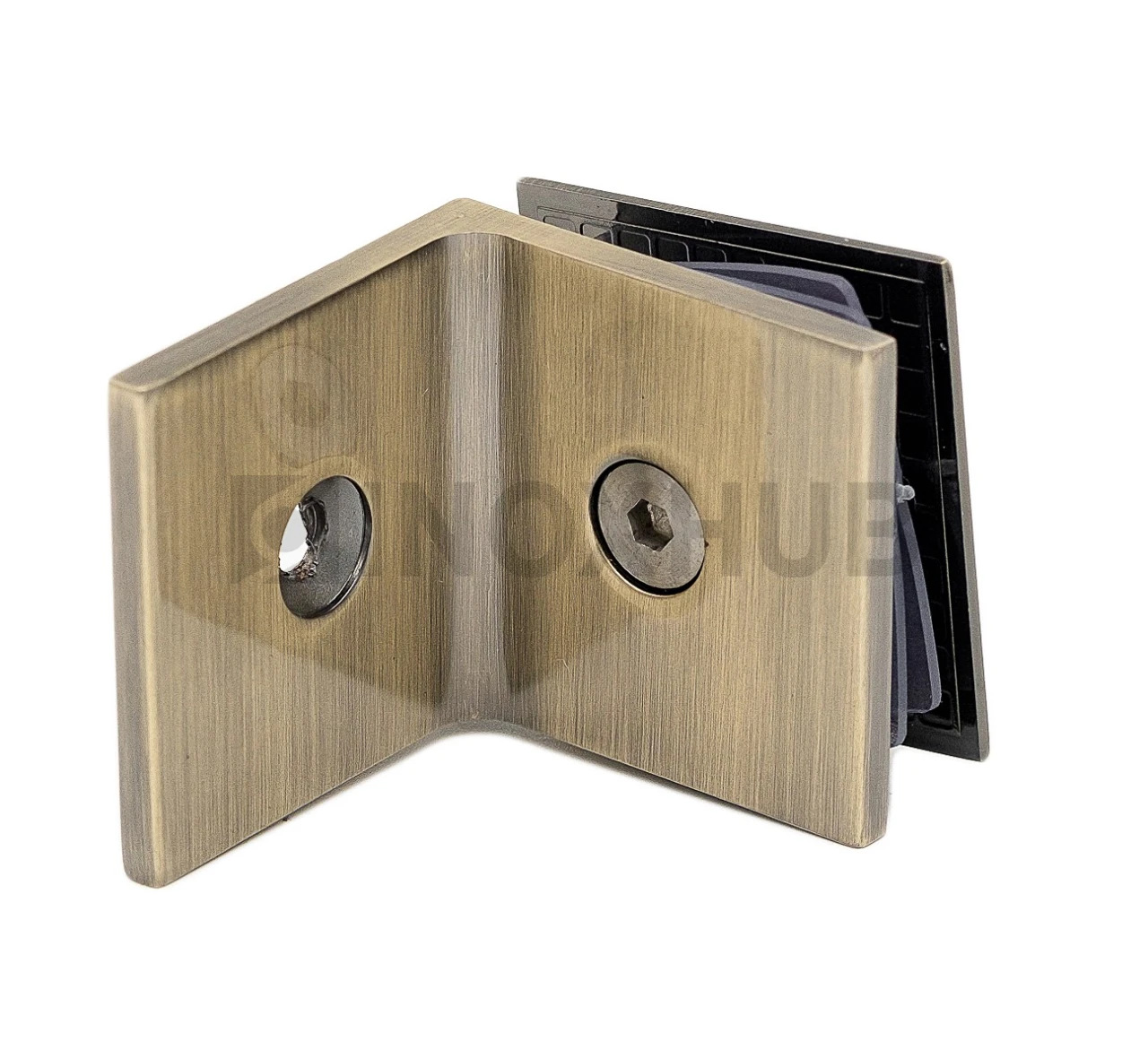 L-образный коннектор для крепления неподвижного стекла душевой кабины изготовлен из цинкового сплава. Поверхность под бронзу устойчива к воздействию влаги, не теряет своих эстетических качеств со временем. Коннектор подходит для стекол толщиной 8-10 мм.
