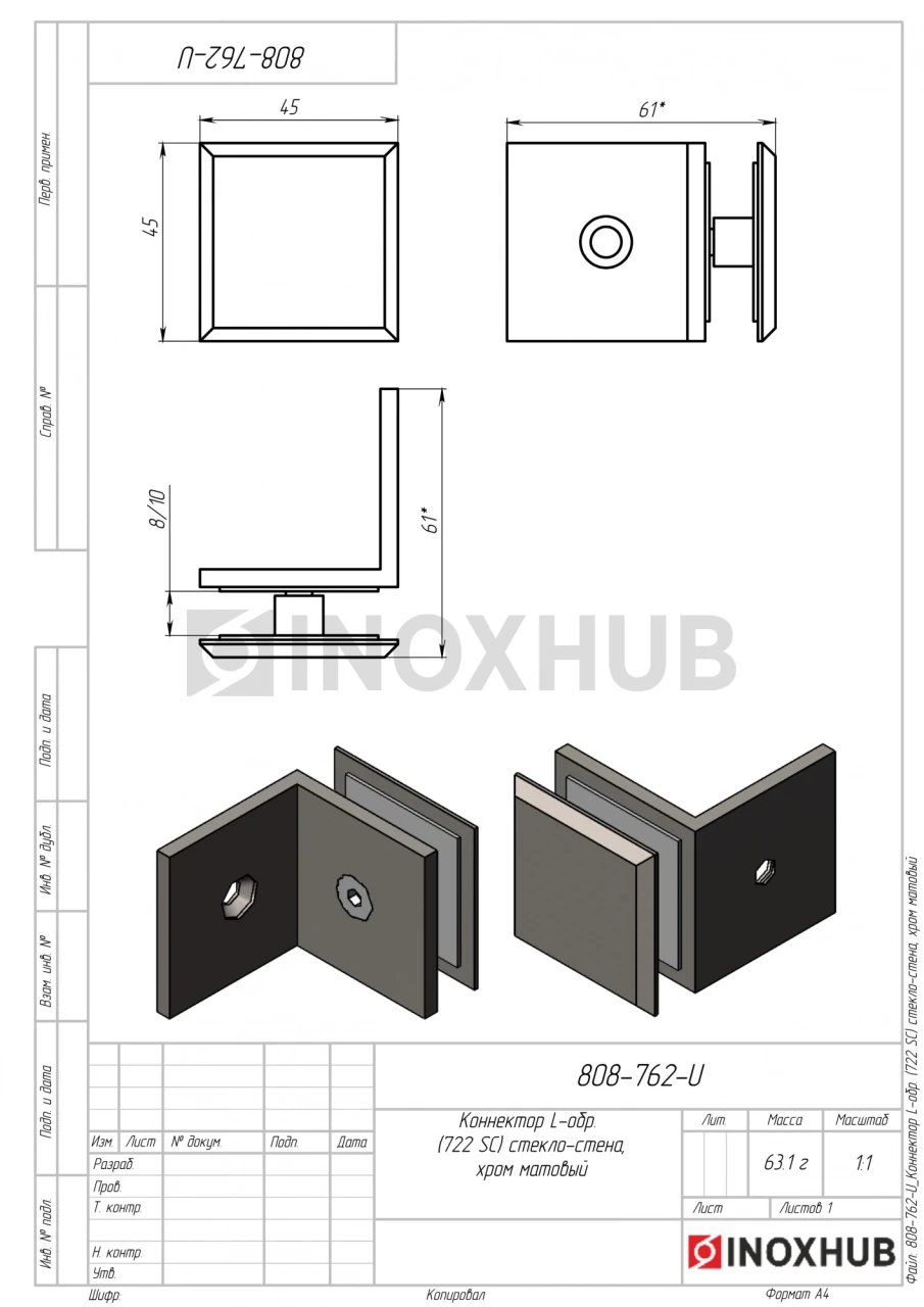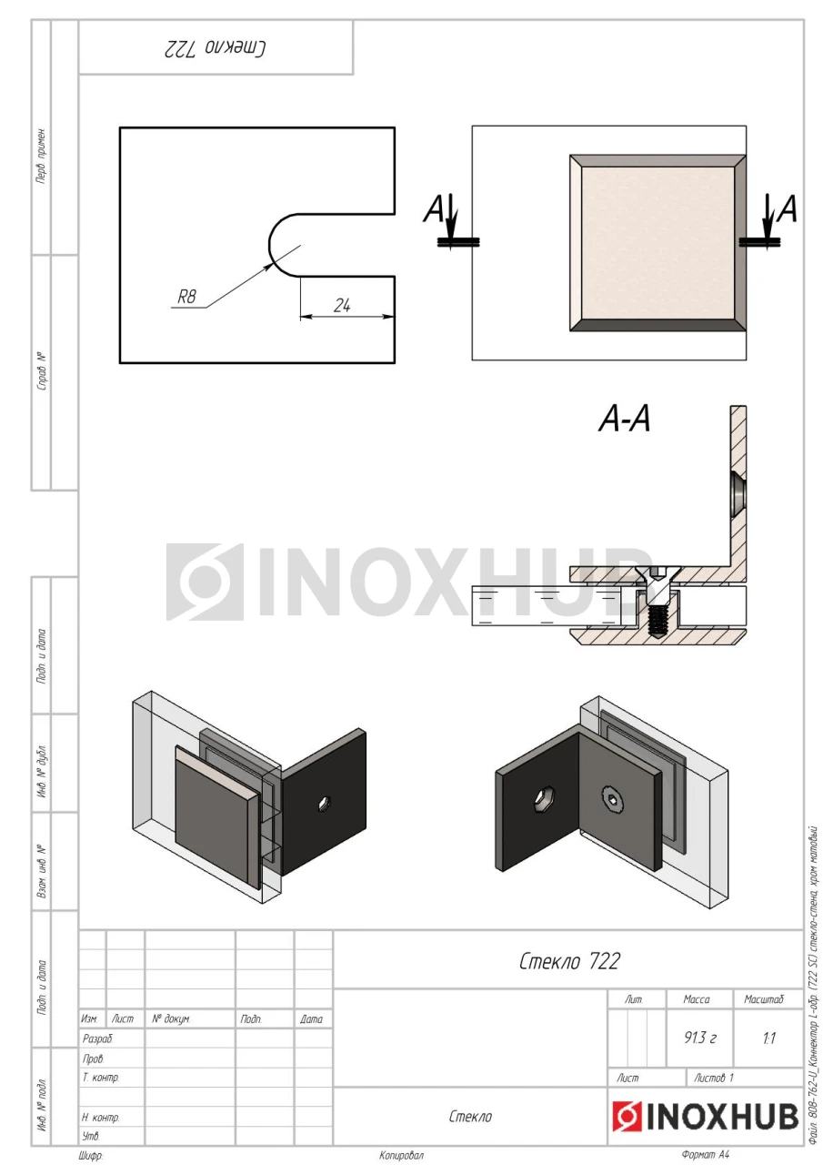 Коннектор L-обр. (722 SC) стекло-стена, матовый хром
