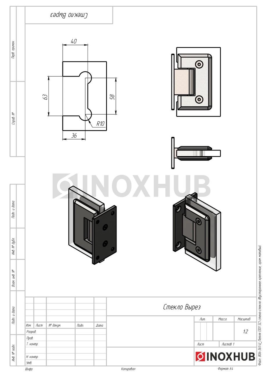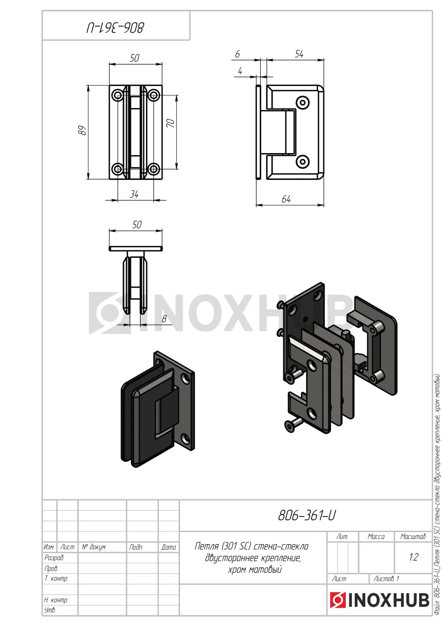 Сборка и монтаж. В комплекте поставляется все необходимое для установки. Соберите петлю и подготовьте стекло согласно схемам на чертежах. Стенки детали имеют увеличенную толщину, поэтому при монтаже стеклянной двери петли не выгибаются.