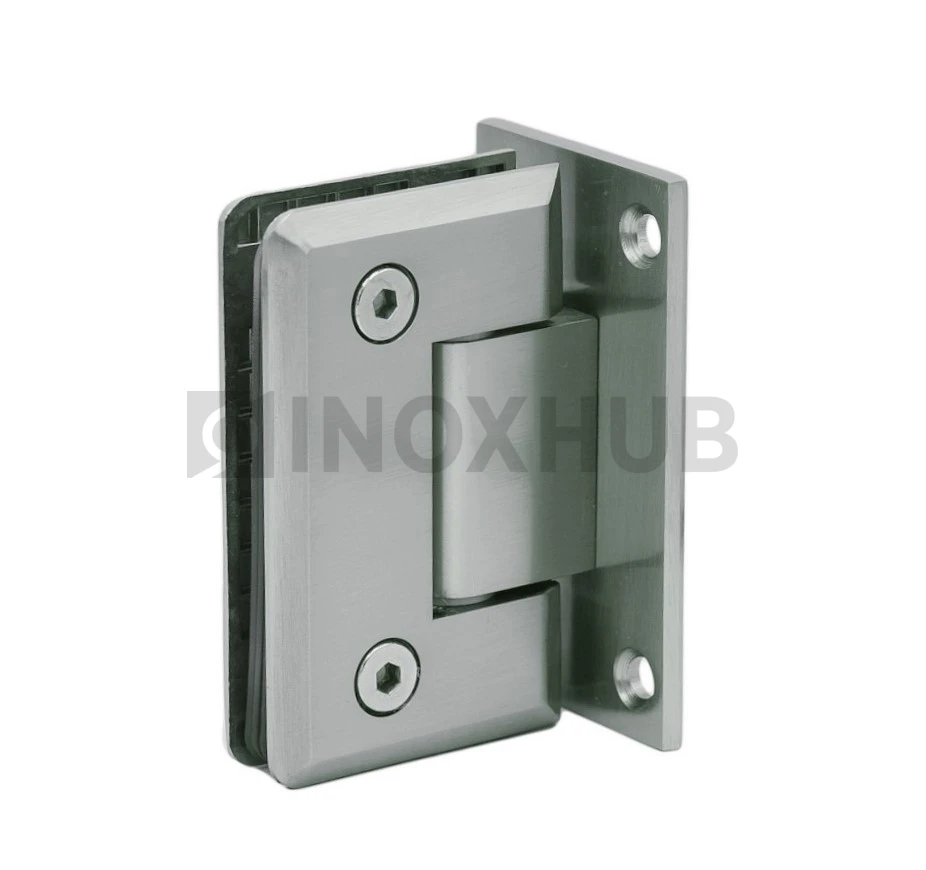 Односторонняя петля стена-стекло со скошенной кромкой изготовлена из цинкового сплава высокого качества. Отделка матовый хром эффектно смотрится в интерьере, подходит под любой цвет. На матовой отделке менее заметны пятна от мыльной пены и известковой воды. Петля подходит для стекол толщиной 8 мм. Максимальная ширина полотна — 700 мм.