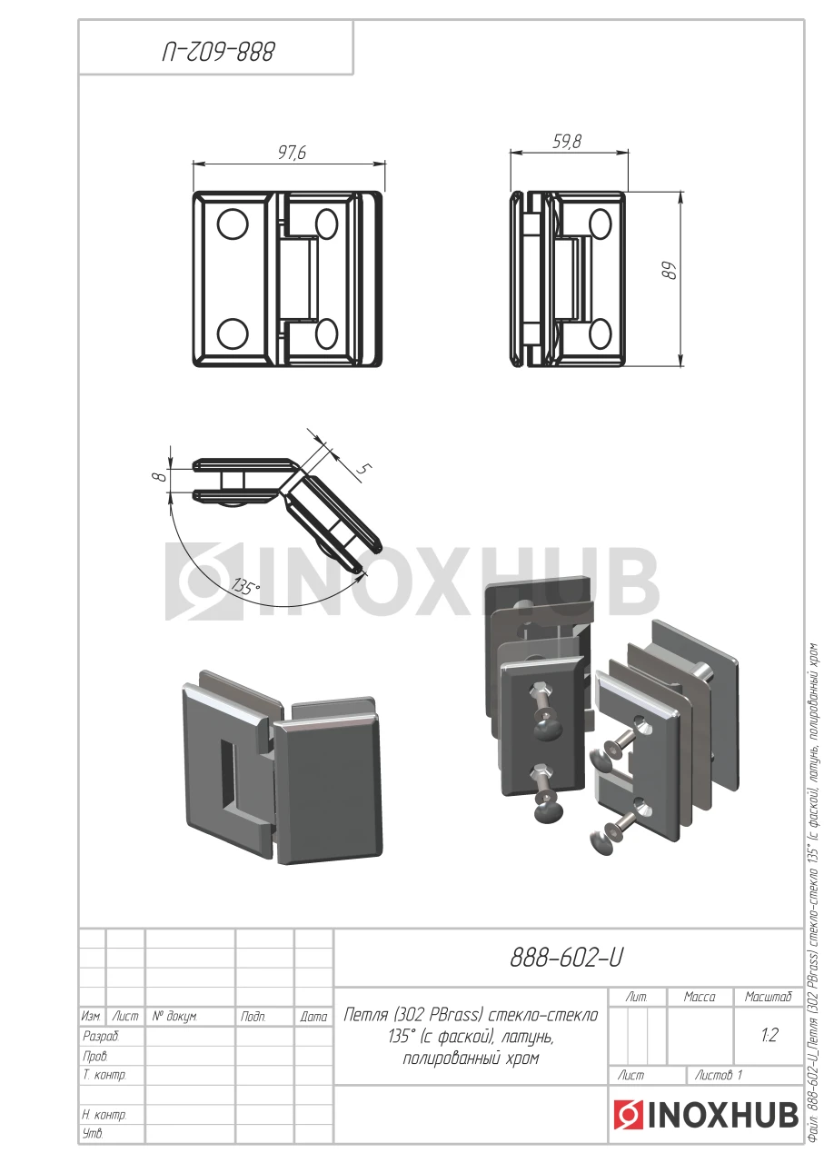 Петля (302 PBrass) стекло-стекло 135° (с фаской), латунь, полированный хром