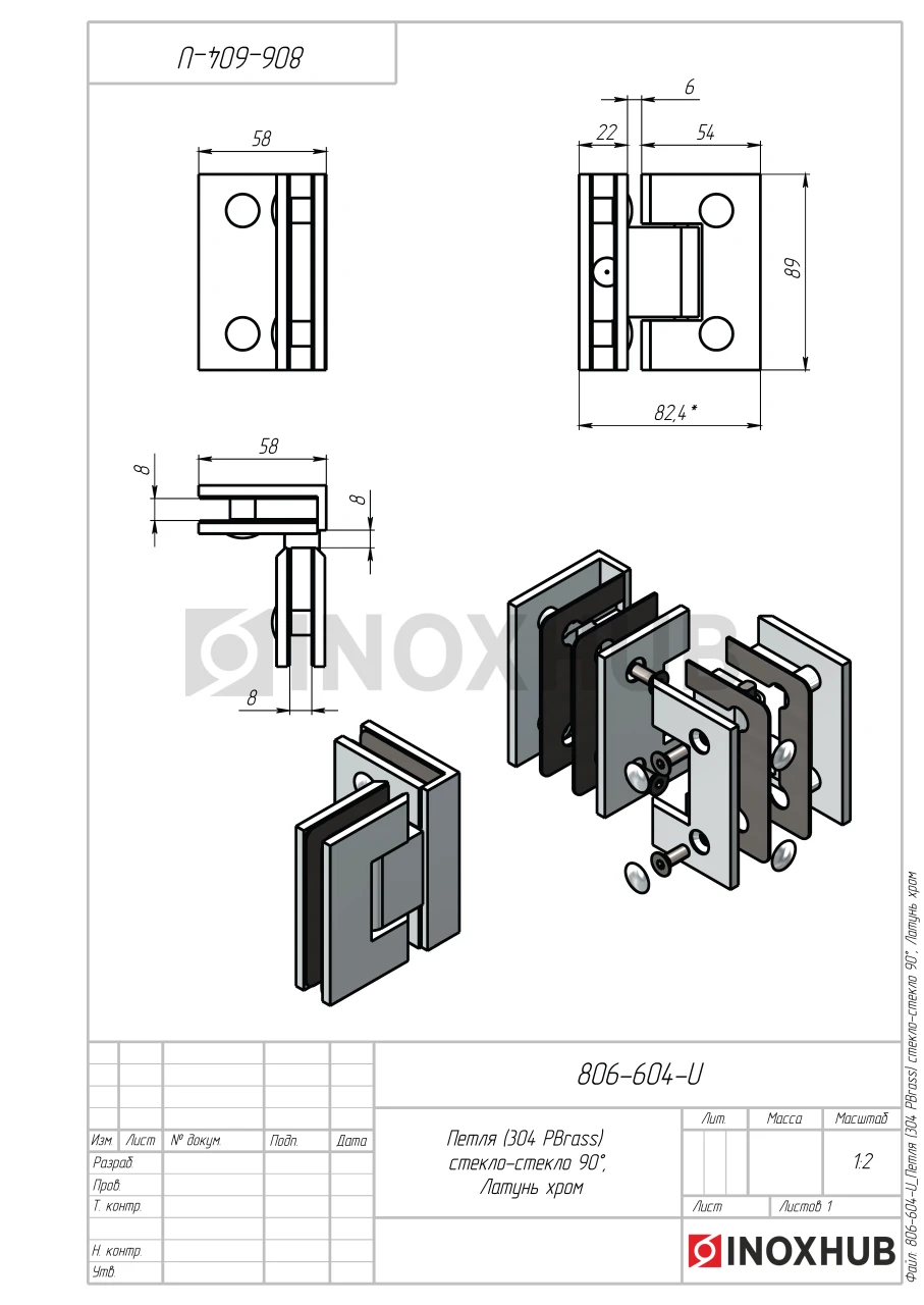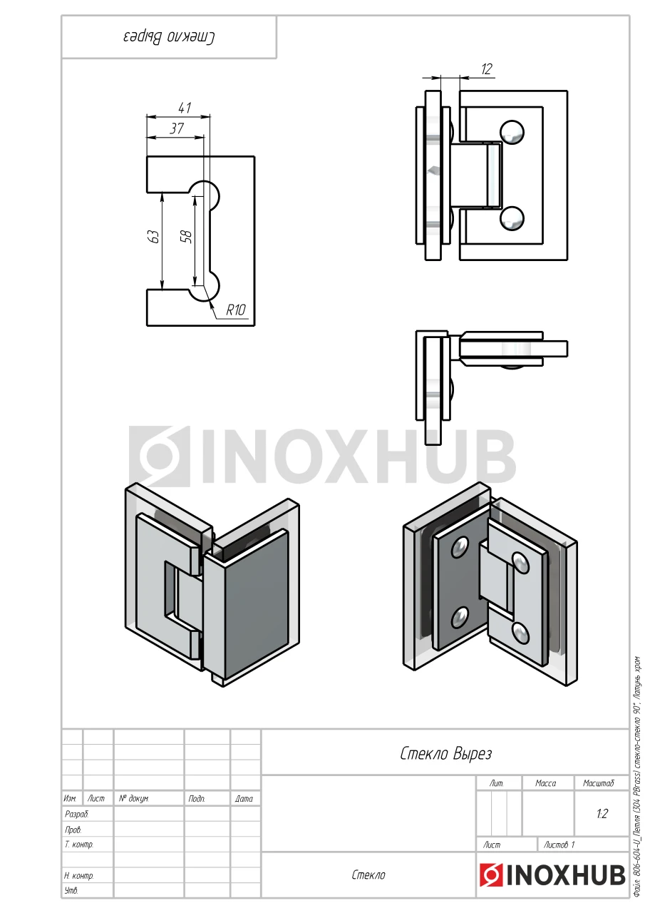 Петля (304 PBrass) стекло-стекло 90°, (без фаски), латунь, полированный хром