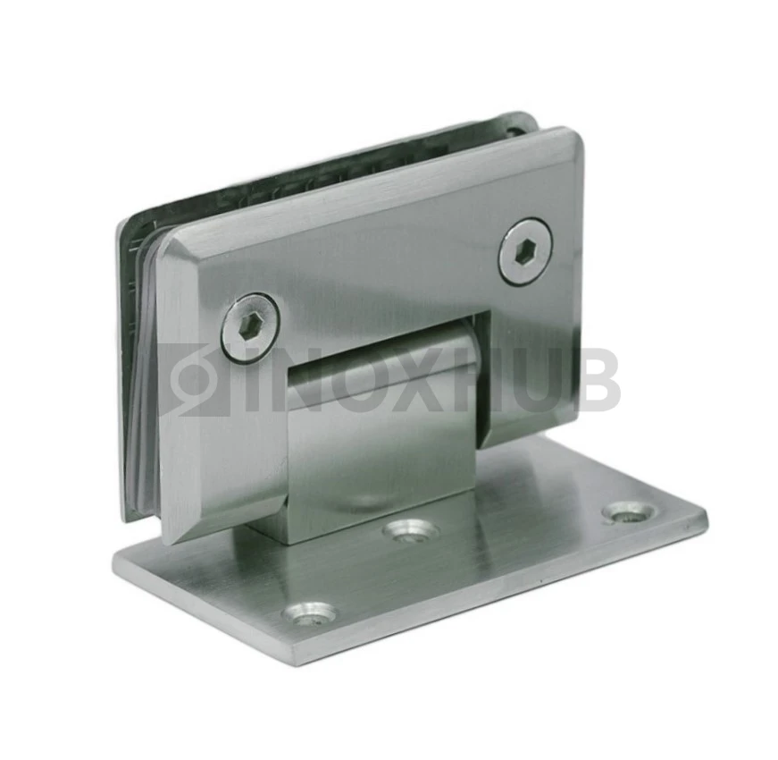 Односторонняя петля стена-стекло со скошенной кромкой изготовлена из цинкового сплава высокого качества. Отделка матовый хром эффектно смотрится в интерьере, подходит под любой цвет. На матовой отделке менее заметны пятна от мыльной пены и известковой воды. Петля подходит для стекол толщиной 8 мм. Максимальная ширина полотна — 700 мм.