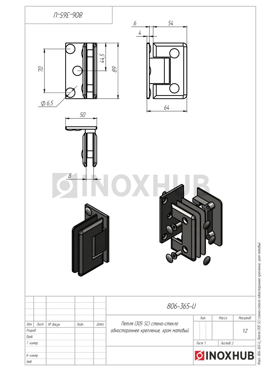 Сборка и монтаж. В комплекте поставляется все необходимое для установки. Соберите петлю и подготовьте стекло согласно схемам на чертежах. Стенки детали имеют увеличенную толщину, поэтому при монтаже стеклянной двери петли не выгибаются.
