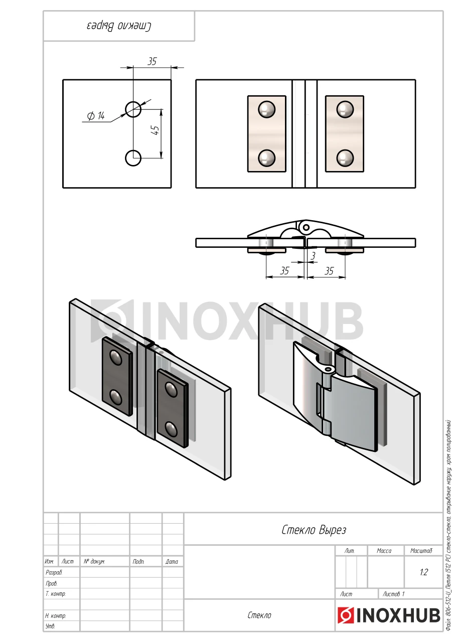 Сборка и монтаж. Подготовьте отверстия в стекле и двери согласно чертежу. Петля не требует реза уплотнителя, все крепежные элементы поставляются в комплекте. Модель устанавливается на шестигранные винты.
