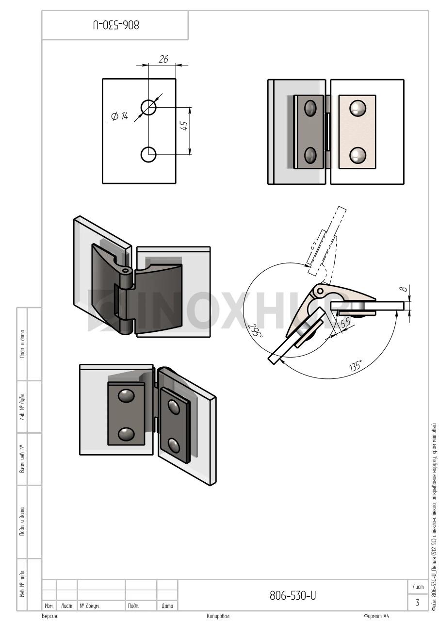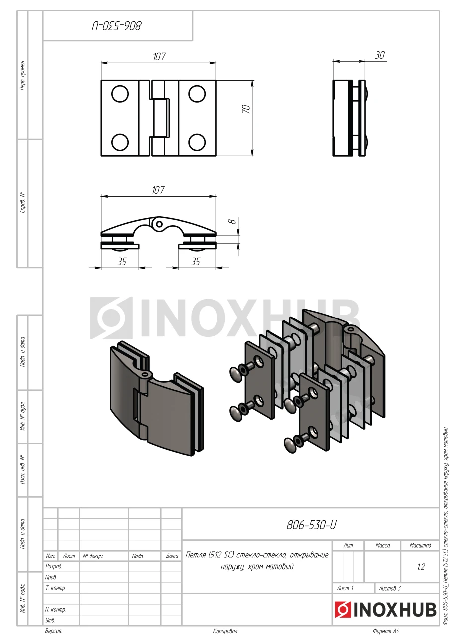 Сборка и монтаж. Подготовьте отверстия в стекле и двери согласно чертежу. Петля не требует реза уплотнители, все крепежные элементы поставляются в комплекте. Модель устанавливается на шестигранные винты.