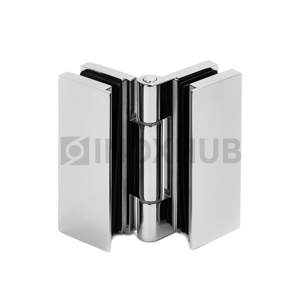 Петля стекло-стекло из цинка относится к изделиям высокого качества. Используемый цинковый сплав имеет плотную структуру, что гарантирует прочность и надежность в эксплуатации. Хромированная полированная поверхность не теряет блеск под воздействием жесткой воды и моющих средств при должном уходе. Высокое качество сплава и механизма в целом обеспечивает плавное открывание/закрывание двери.