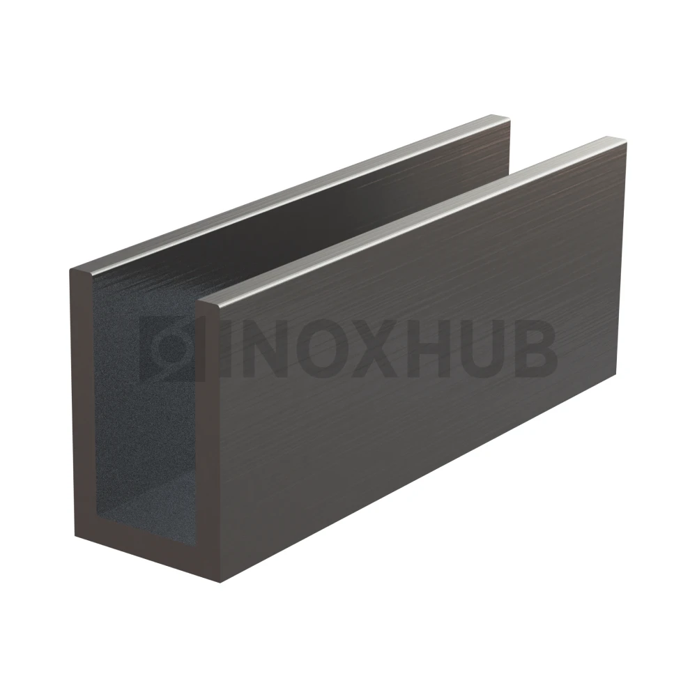 П-образный профиль для крепления неподвижного стекла изготовлен из алюминия. Алюминиевые изделия легче стальных, поэтому не нагружают конструкцию. Прочный профиль устойчив к перепадам температур, воздействию пара и воды. Изделие обеспечивает надежную фиксацию стекла толщиной 10 мм. Поверхность Gun Metal ("оружейная сталь"), надолго сохраняет безупречность при правильном уходе. Профиль поставляется длиной 3 метра. Рекомендуется заказать специальный тубус для транспортировки.