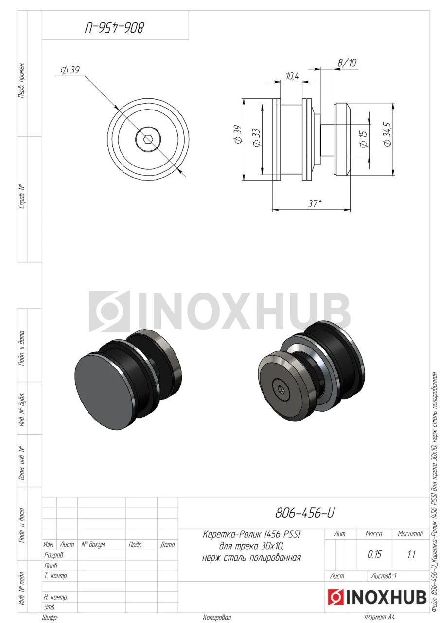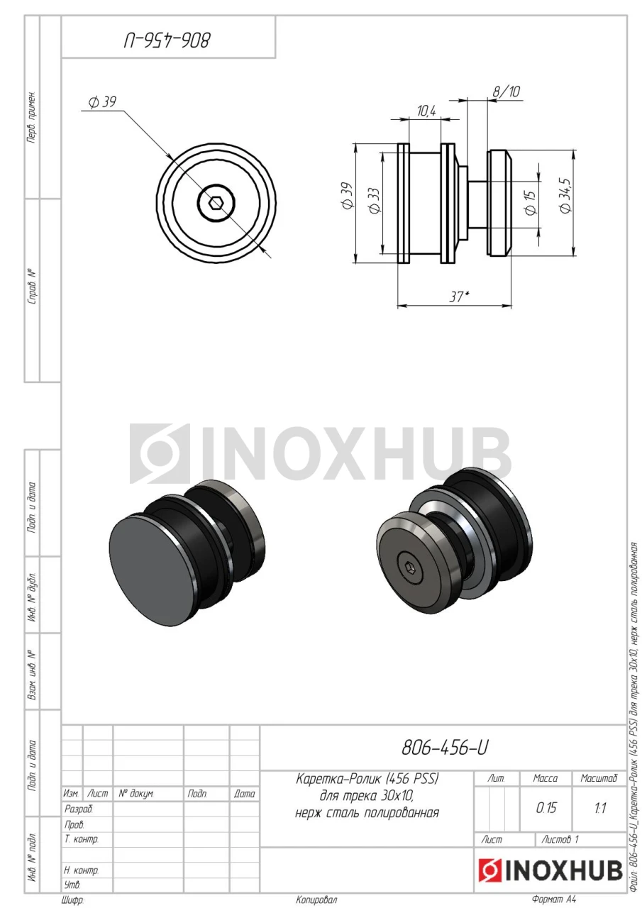 Каретка-Ролик (456 PSS) для трека 30×10, нерж. сталь полированная