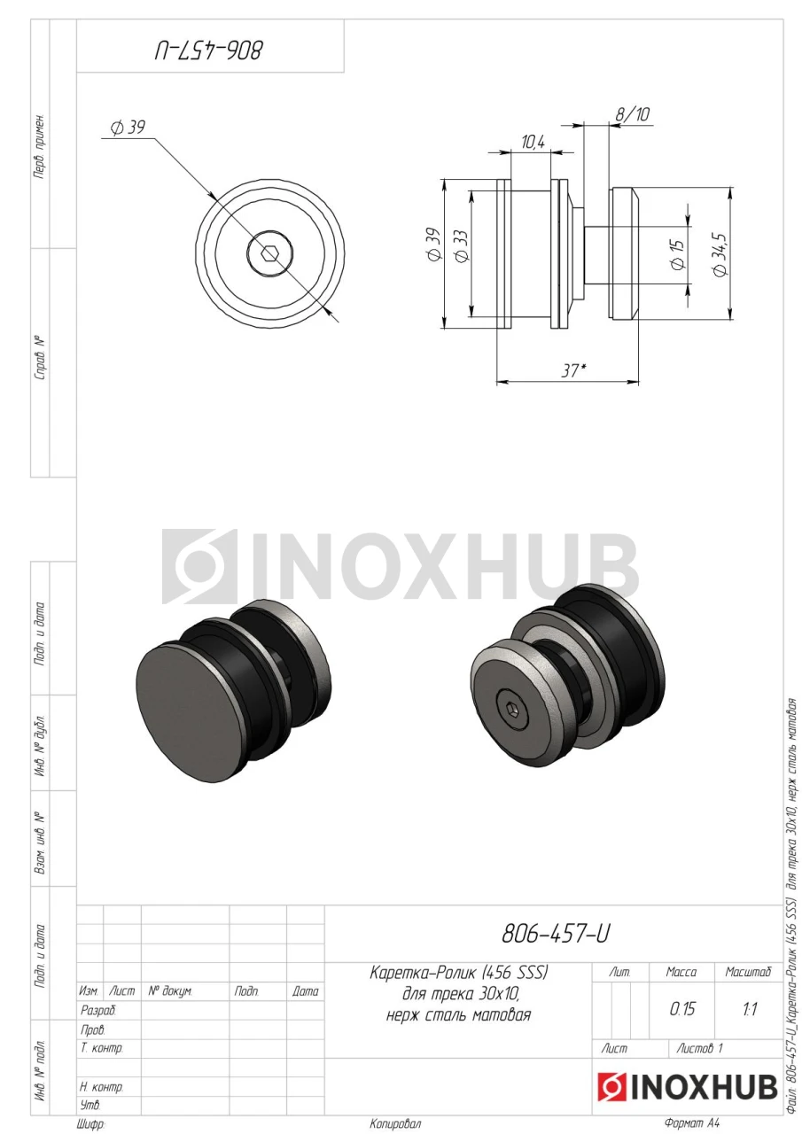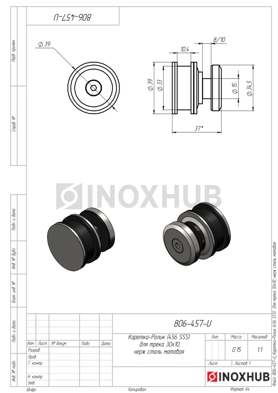 Каретка-Ролик (456 SSS) для трека 30×10, нерж. сталь матовая