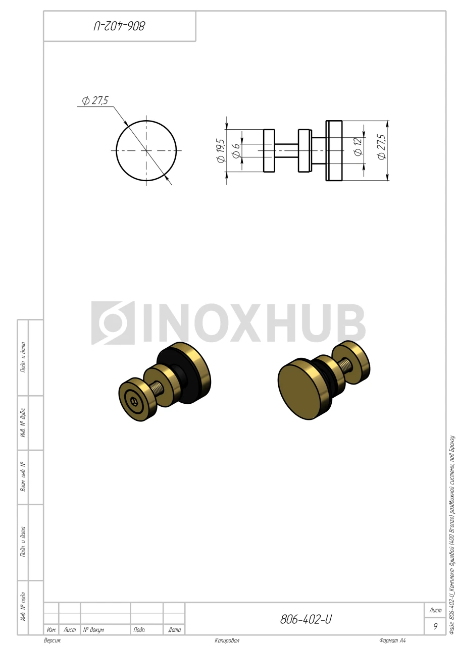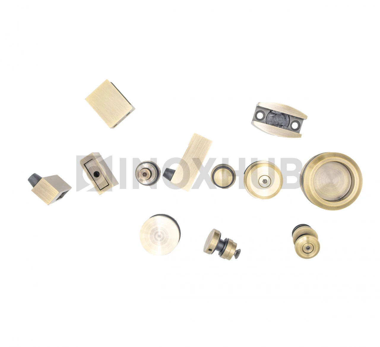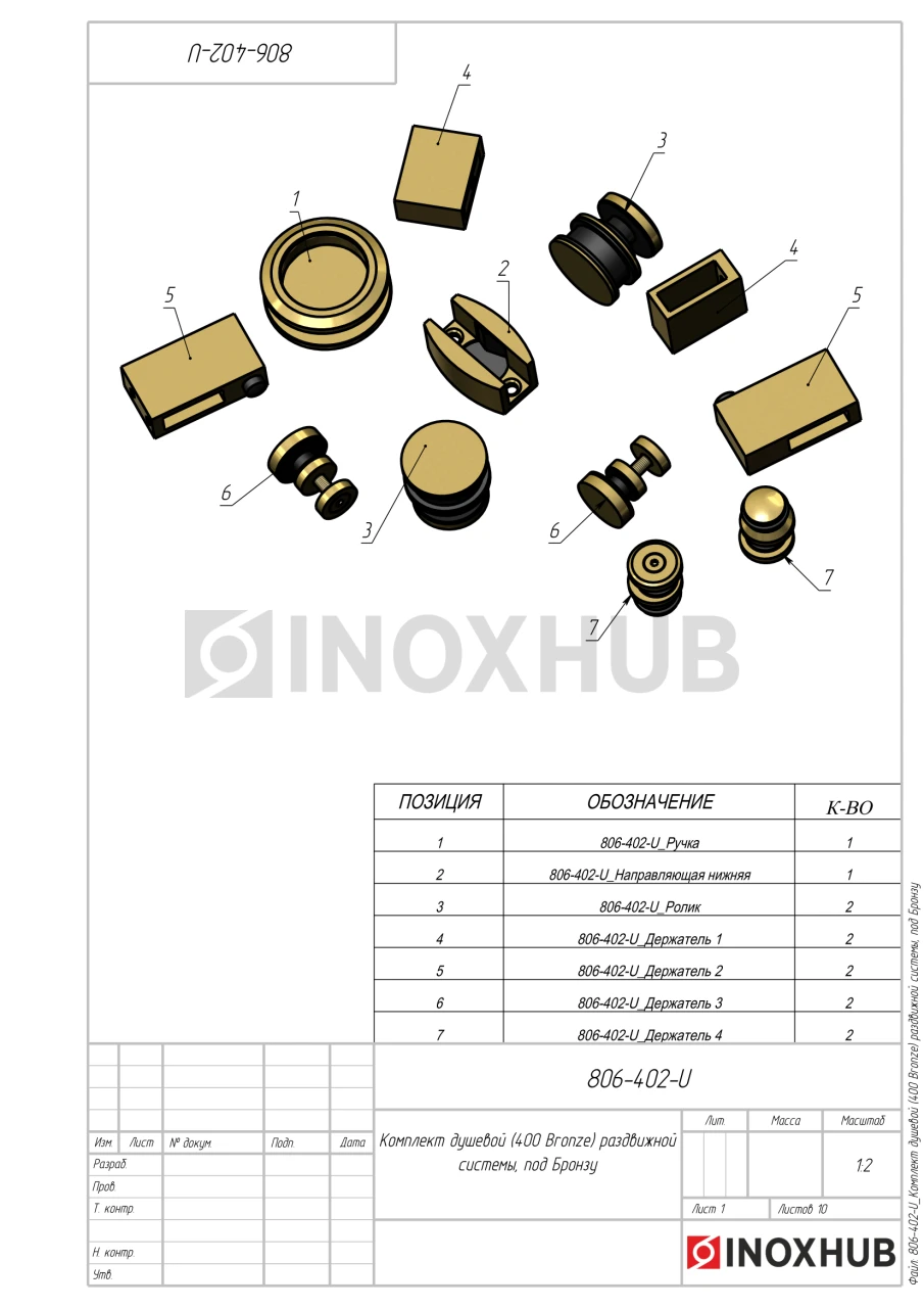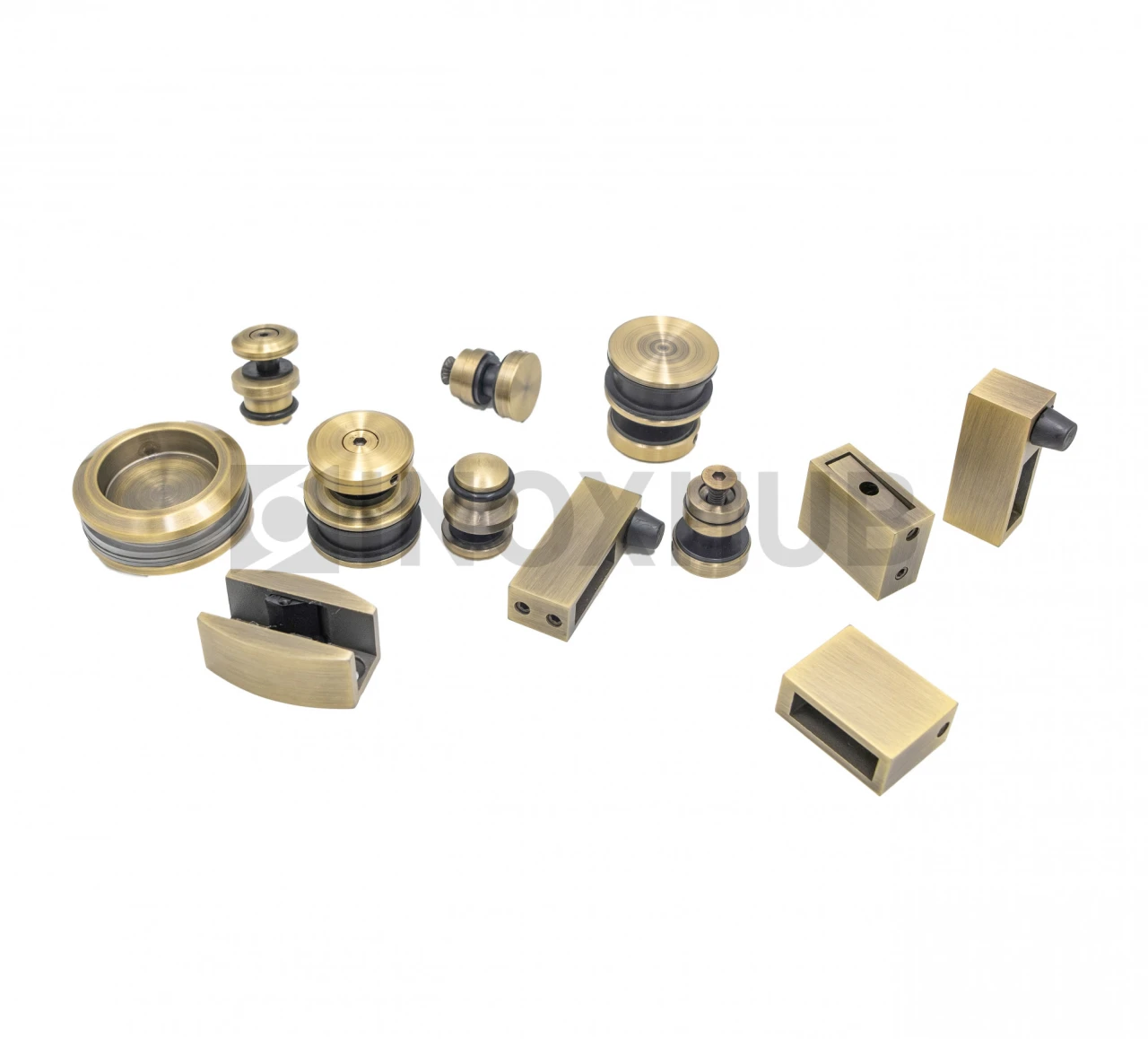 Комплект для установки раздвижных дверей изготовлен из нержавеющей стали AISI 304. Материал устойчив к воздействию влаги, не подвержен коррозии в условиях ванной комнаты. Бронзовая отделка элементов элегантно смотрится в интерьере, гармонично сочетается с натуральным камнем, мрамором, деревом.