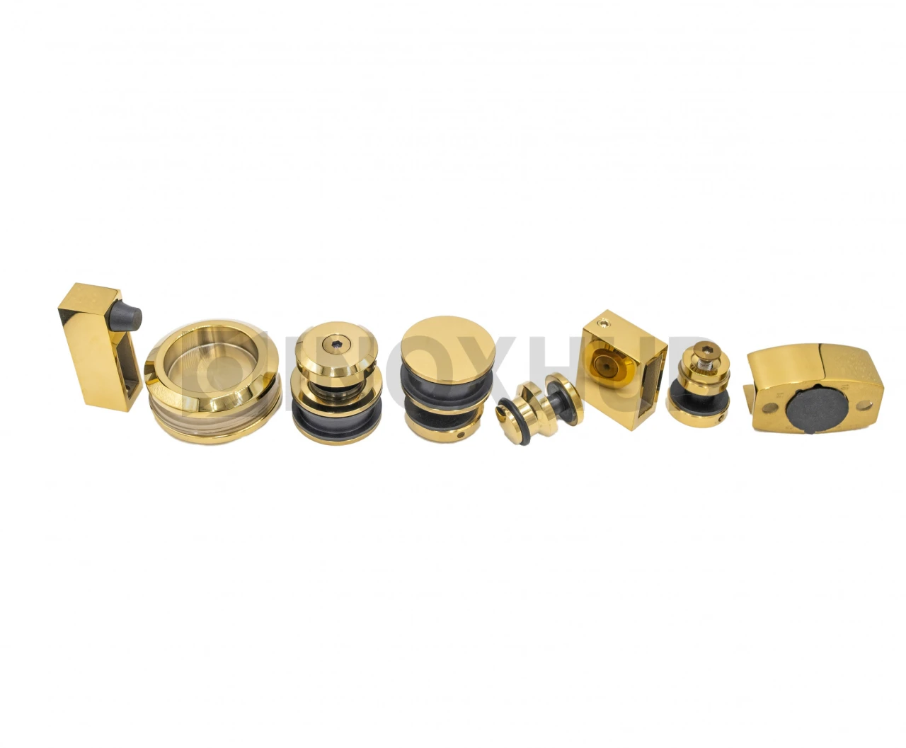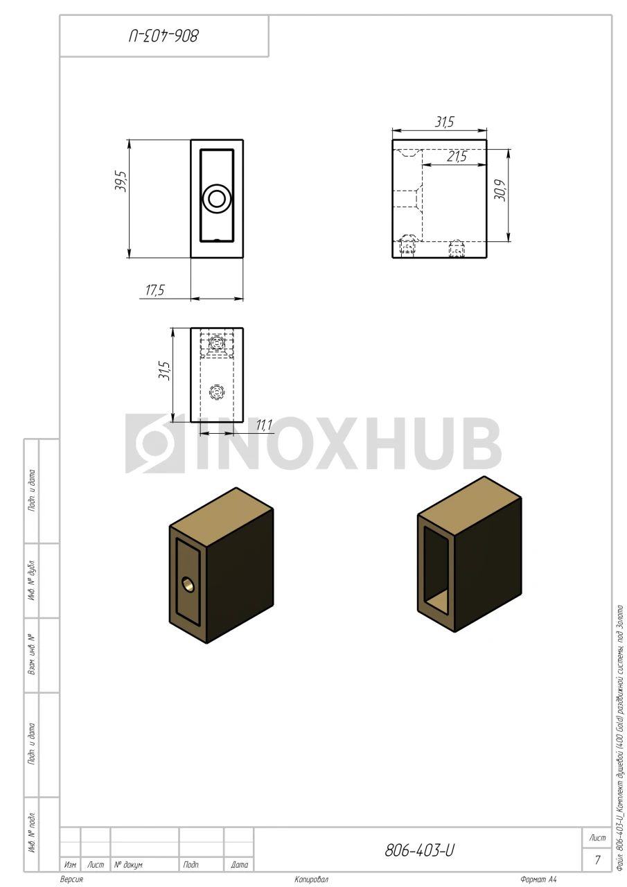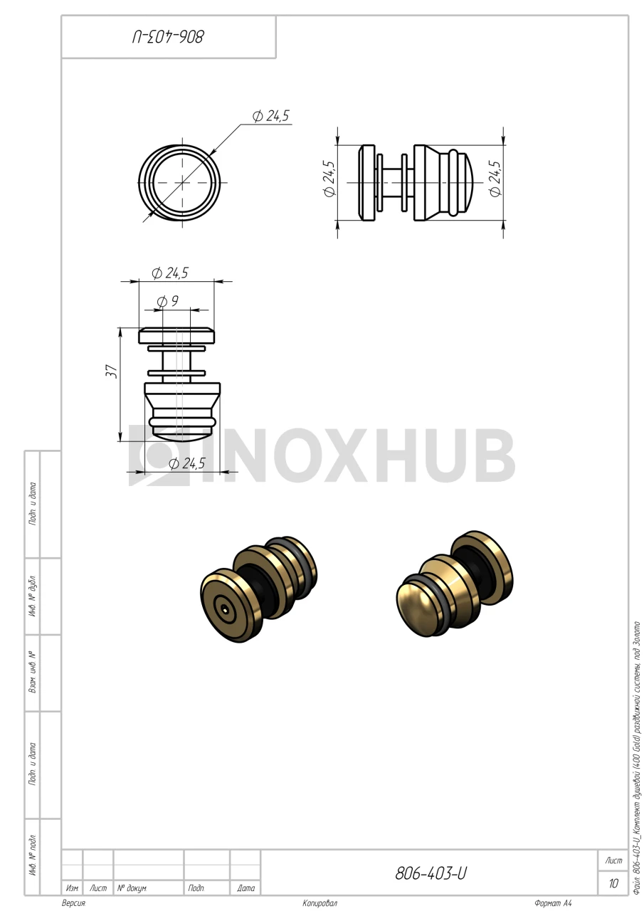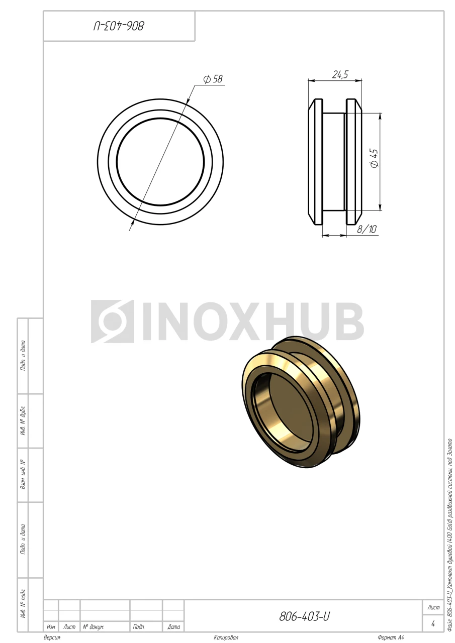 Комплект для установки раздвижных дверей изготовлен из нержавеющей стали AISI 304. Материал устойчив к воздействию влаги, не подвержен коррозии в условиях ванной комнаты. Отделка под золото надолго сохраняет свой первоначальный вид, хорошо сочетается с интерьером ванной комнаты.