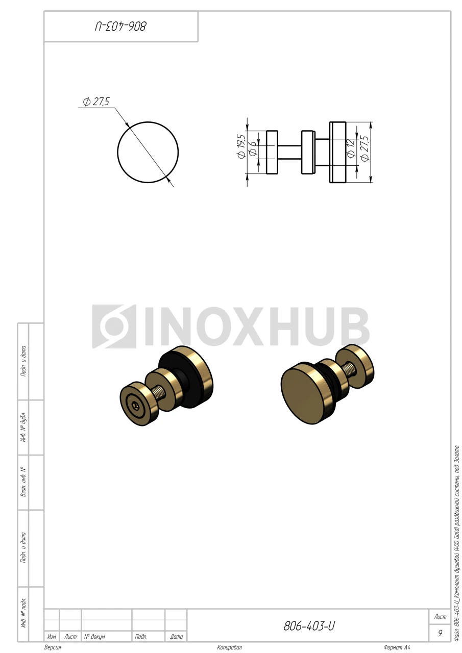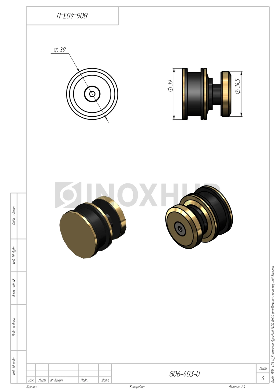 - Ручка двусторонняя тарельчатого типа диаметром 48 мм — 1 шт.
