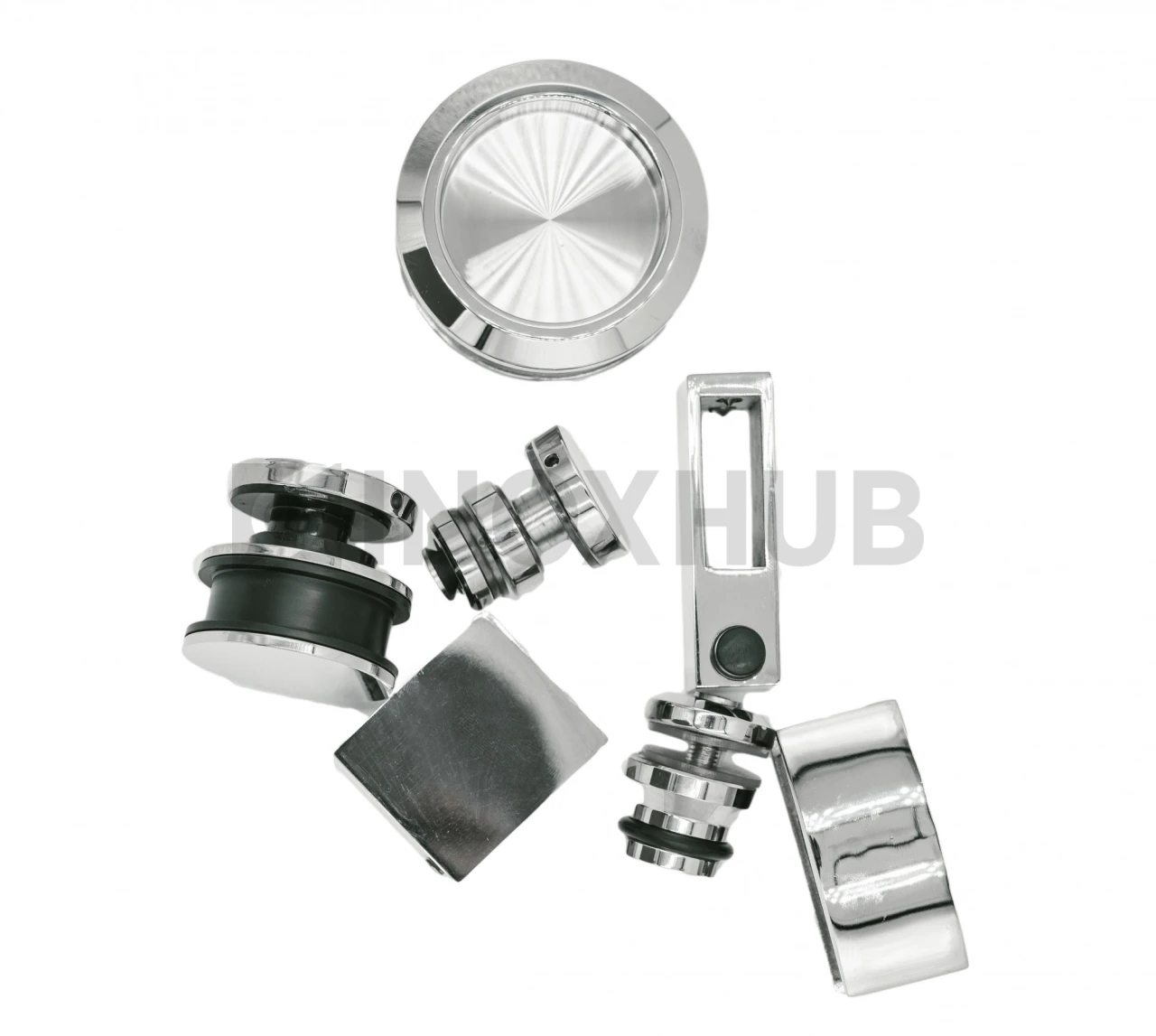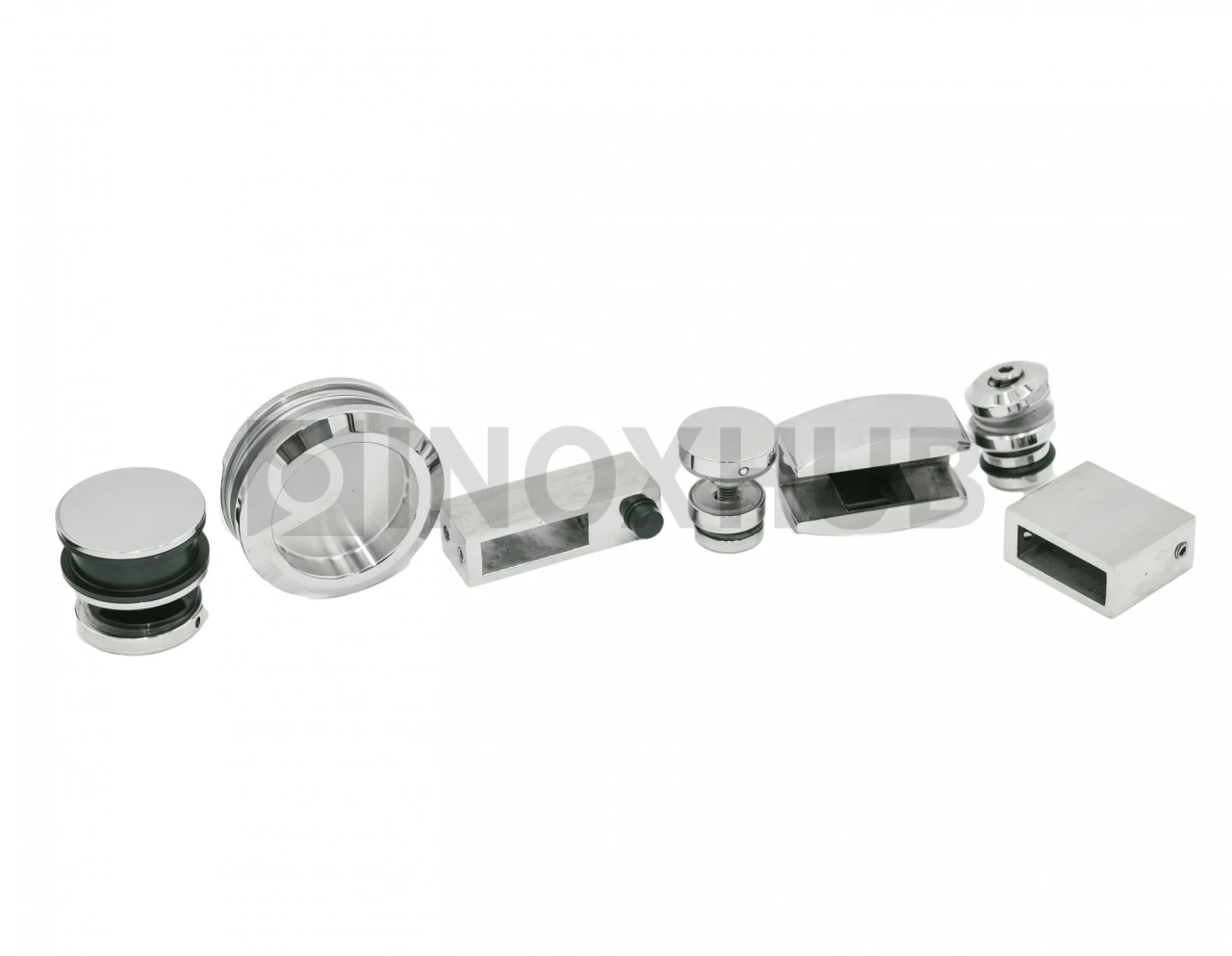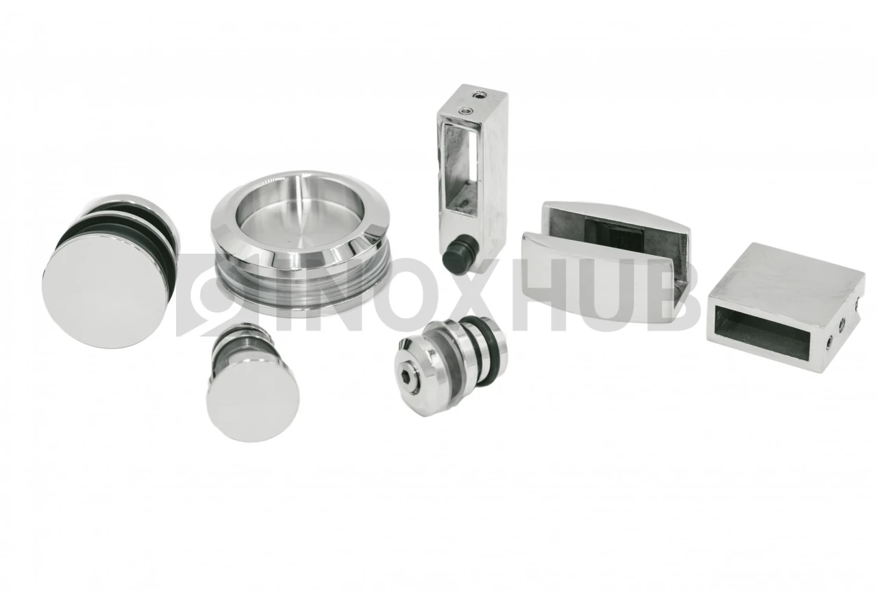 Комплект для установки раздвижных дверей изготовлен из нержавеющей стали AISI 304. Материал устойчив к воздействию влаги, не подвержен коррозии в условиях ванной комнаты. Полированные элементы комплекта стильно смотрятся в интерьере, имеют глянцевый блеск.