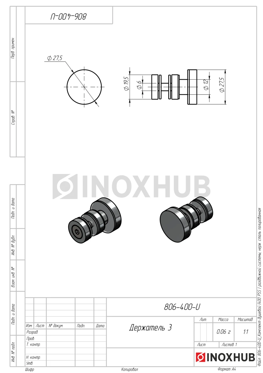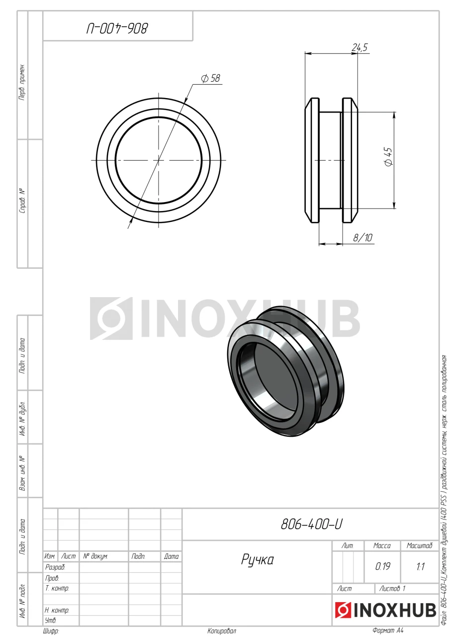 - Ручка двусторонняя тарельчатого типа диаметром 48 мм — 1 шт.