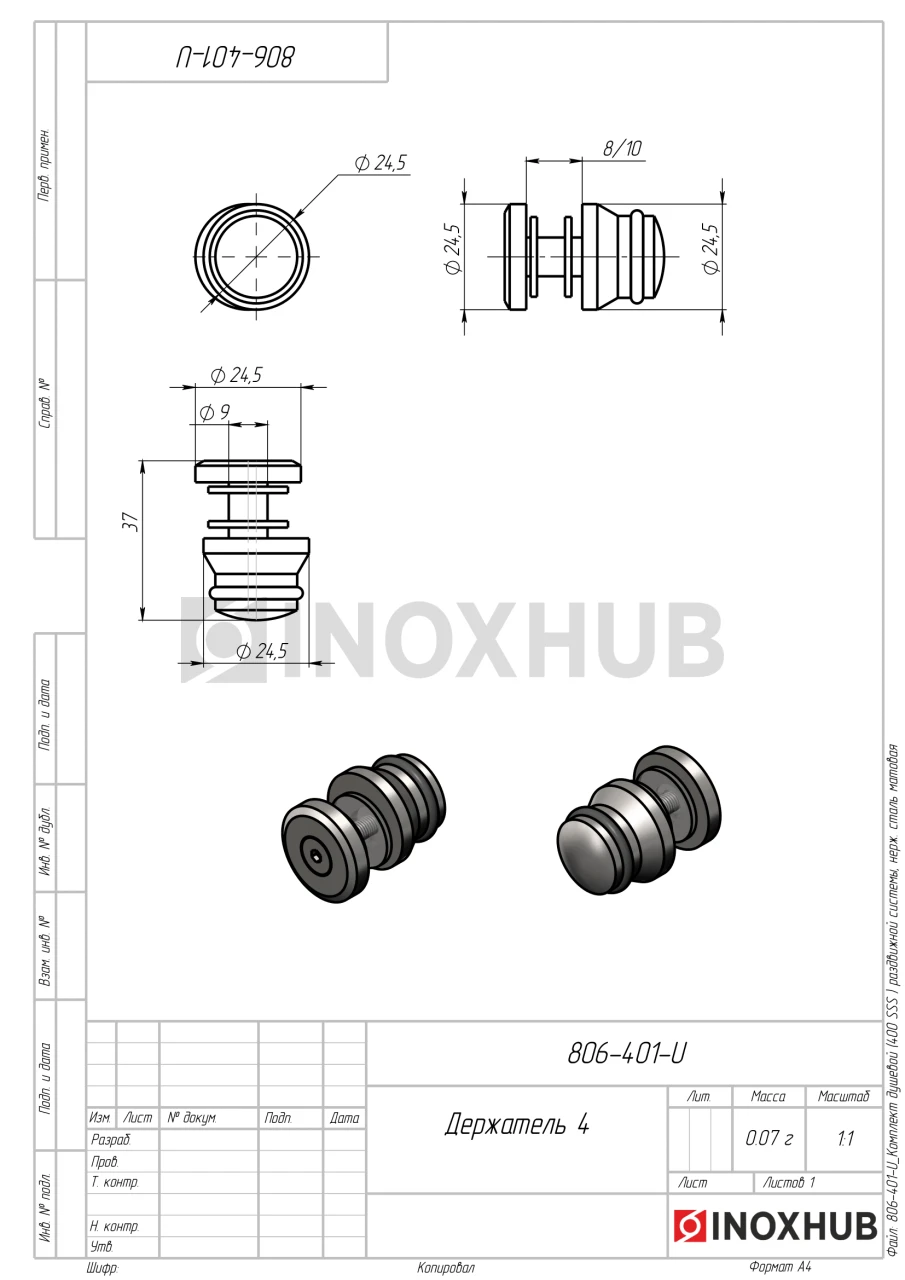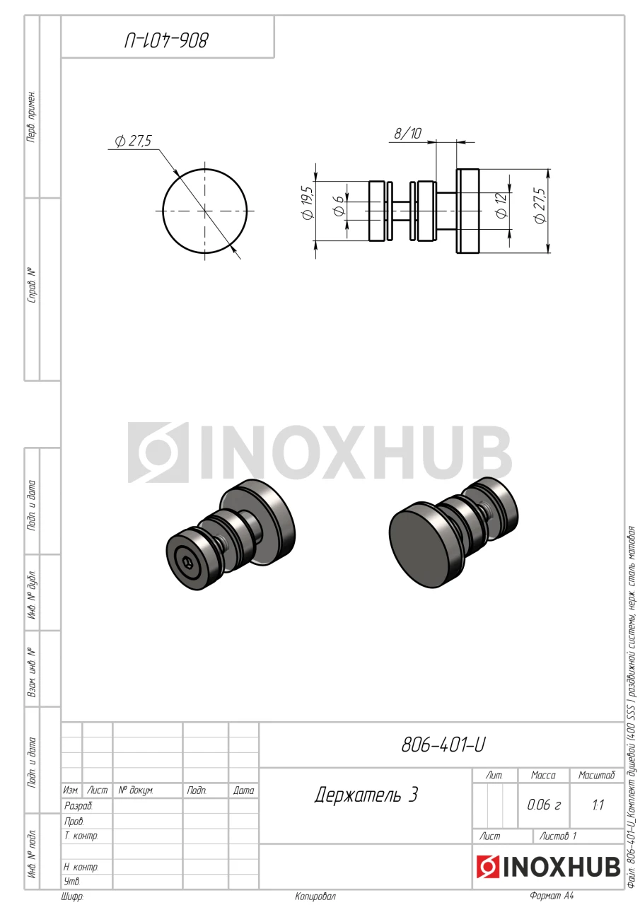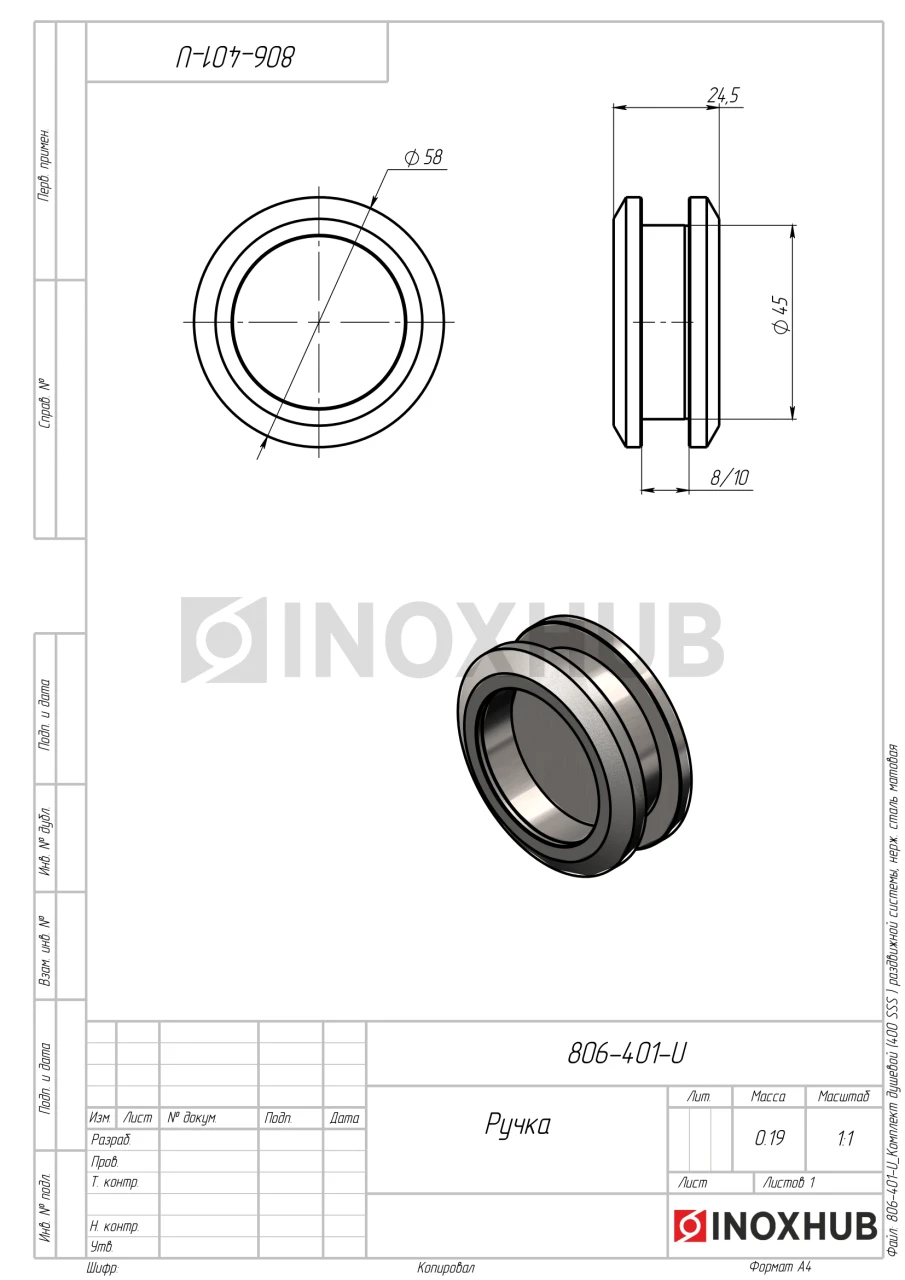 - Ручка двусторонняя тарельчатого типа диаметром 48 мм — 1 шт.