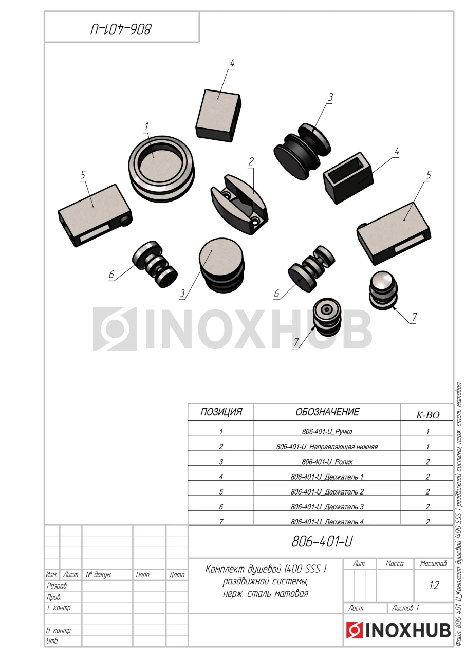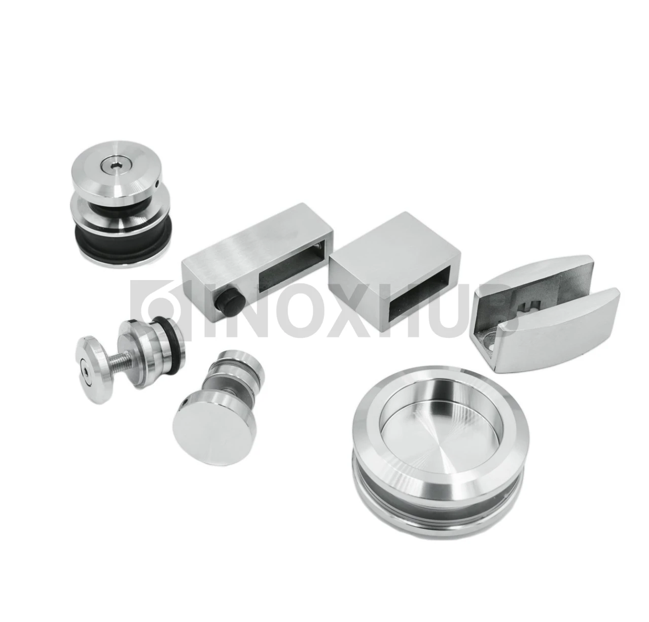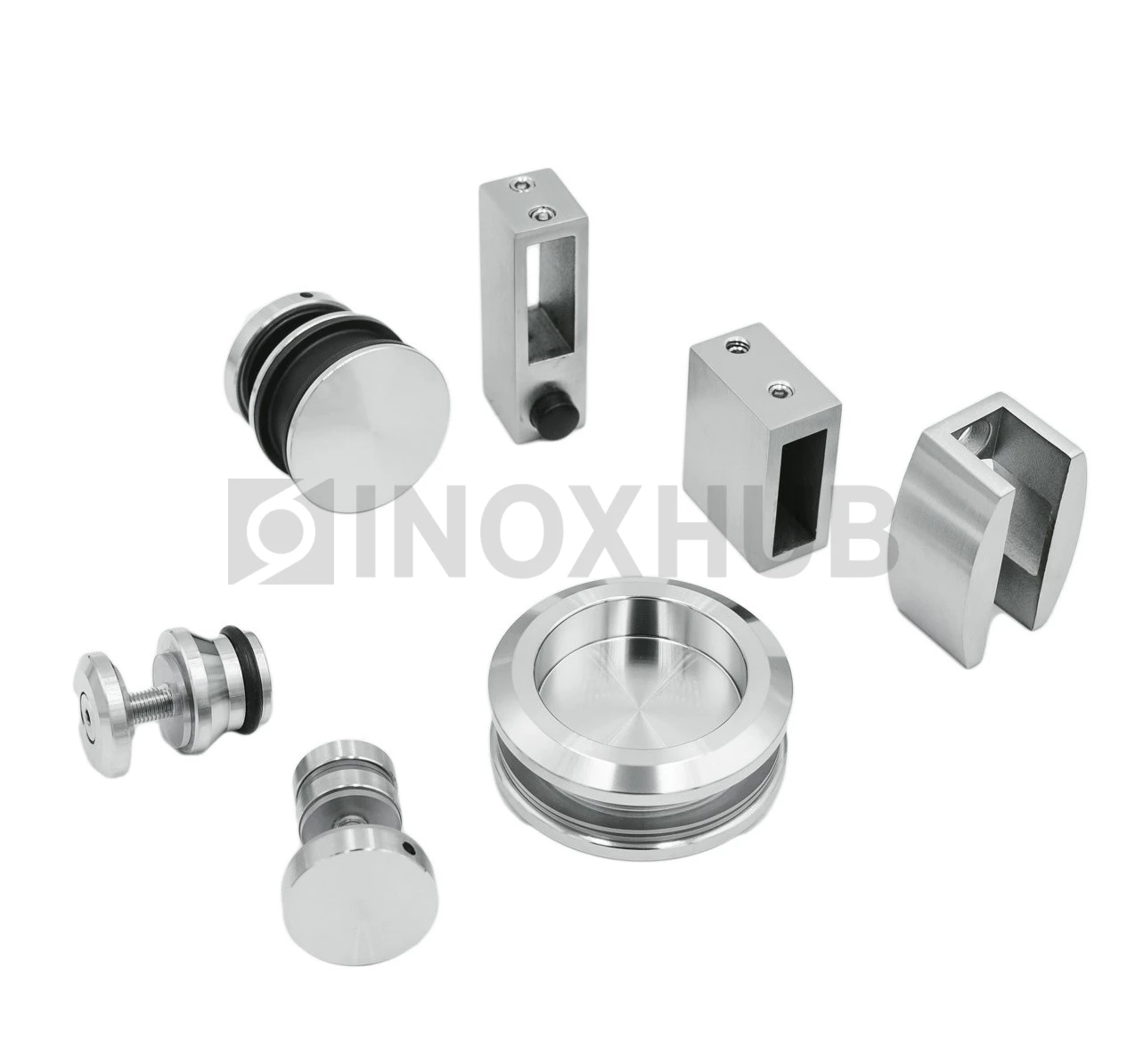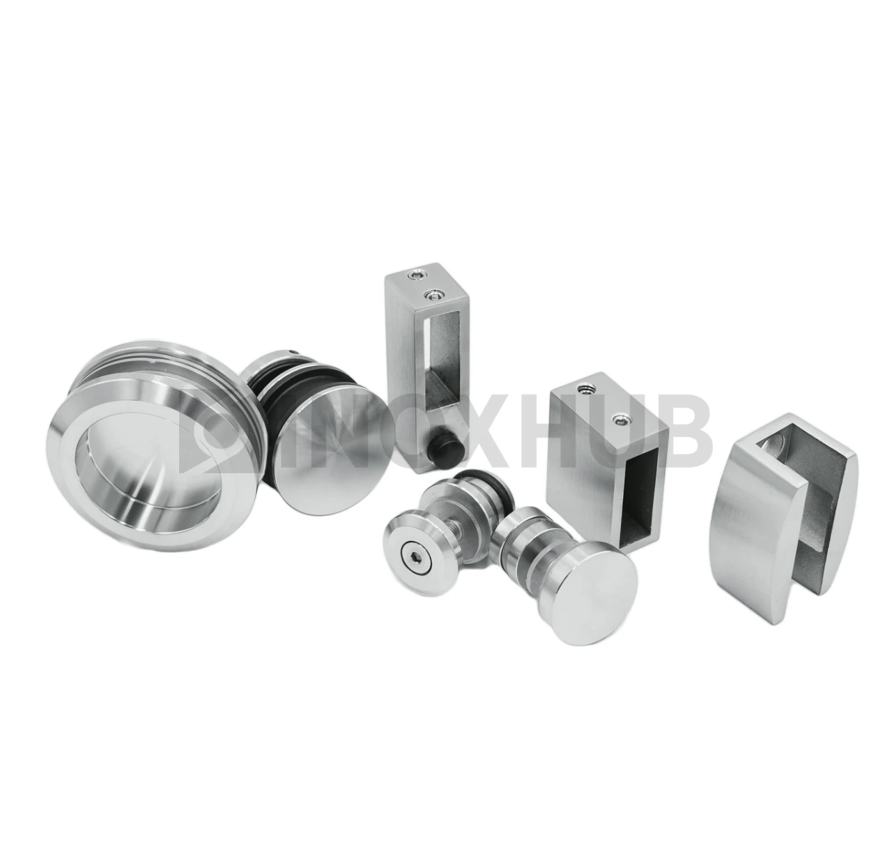 Комплект для установки раздвижных дверей изготовлен из нержавеющей стали AISI 304. Материал устойчив к воздействию влаги, не подвержен коррозии в условиях ванной комнаты. Шлифованные элементы комплекта лаконично смотрятся в интерьере, имеют матовую текстуру.