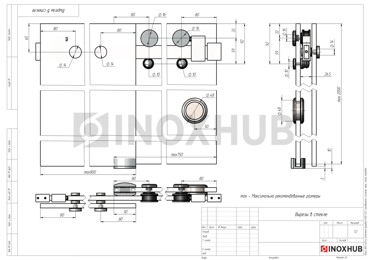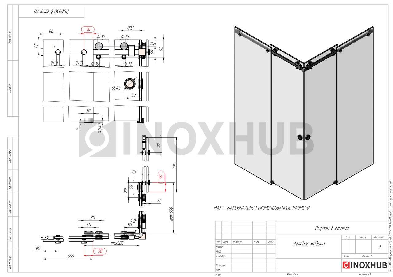 Все размеры деталей, вырезы в стекле, схемы для сборки указаны в чертежах.