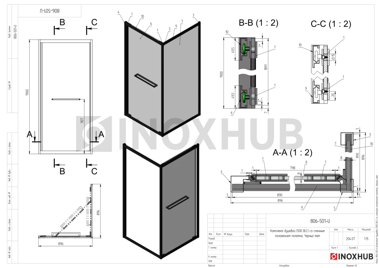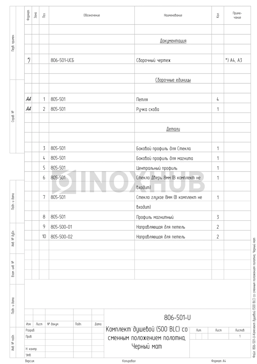 Комплект душевой (500 BLC) со сменным положением полотна, Черный мат