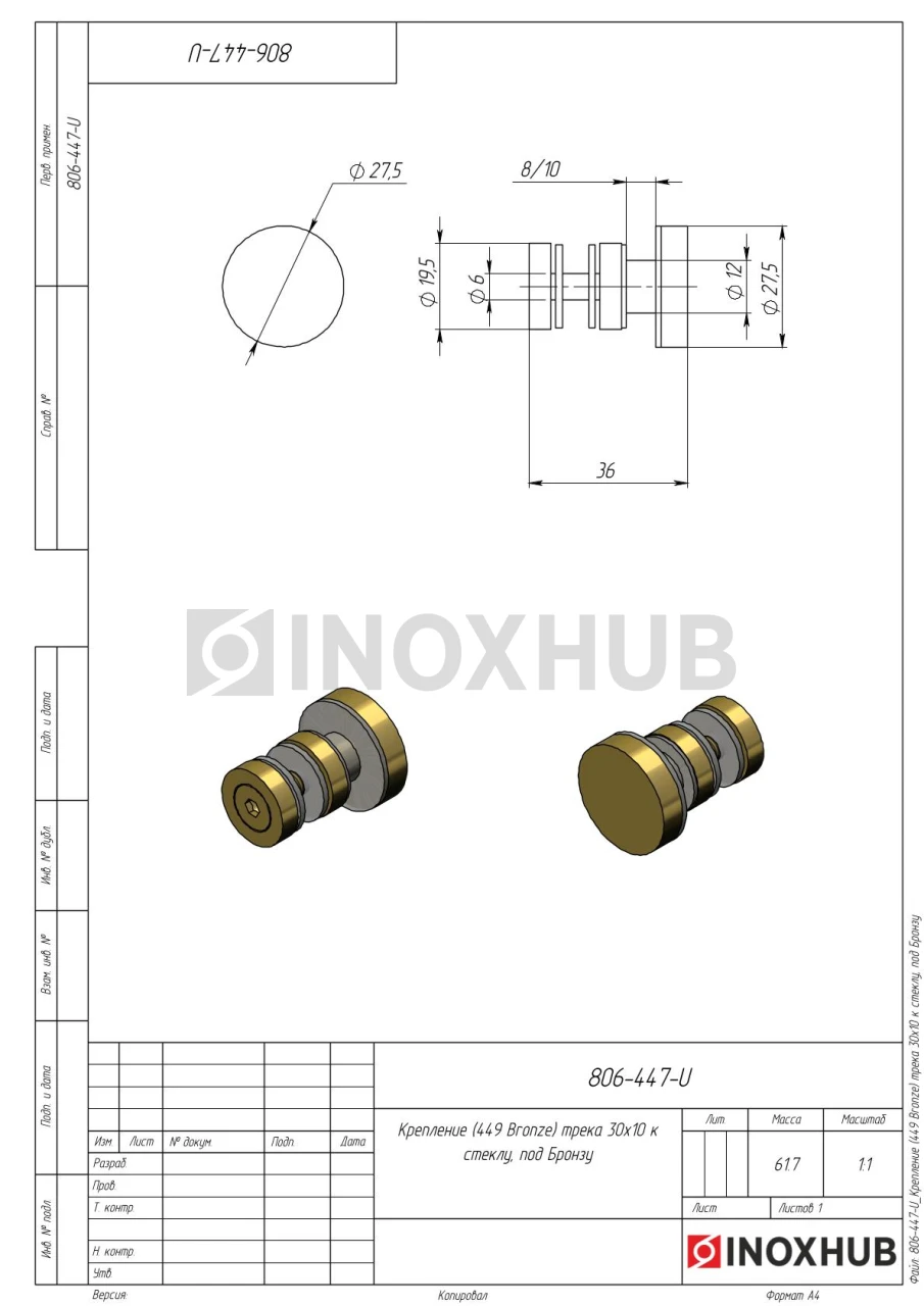 Крепление (449 Bronze) трека 30×10 к стеклу, под Бронзу