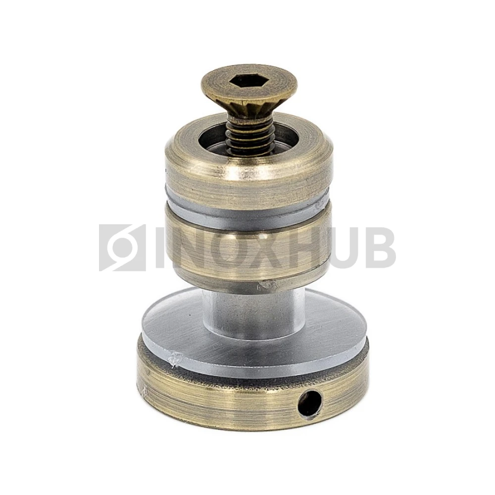 Крепление трека изготовлено из нержавеющей стали AISI 304. Стальной сплав устойчив к агрессивным средам, постоянному воздействию влаги. Покрытие под бронзу сохраняет свой вид в течение срока эксплуатации, устойчиво к перепадам температур, моющим средствам.