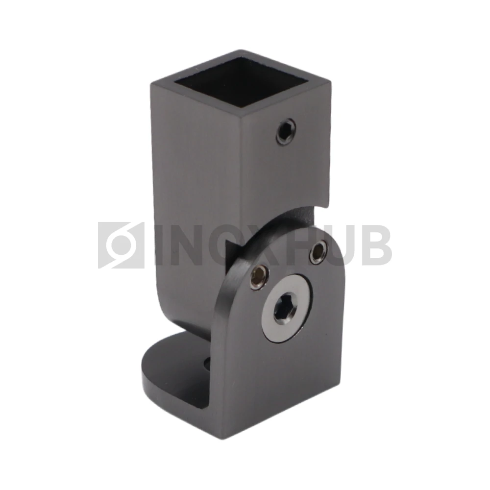Поворотный держатель штанги 15х15 мм изготовлен из нержавеющей стали марки AISI 304. Деталь обладает коррозийной стойкостью, рассчитана на высокие нагрузки. Отделка "оружейная сталь" (gunmetal) не теряет свои свойства под воздействием влаги и перепадов температур, надолго сохраняет первоначальный вид.