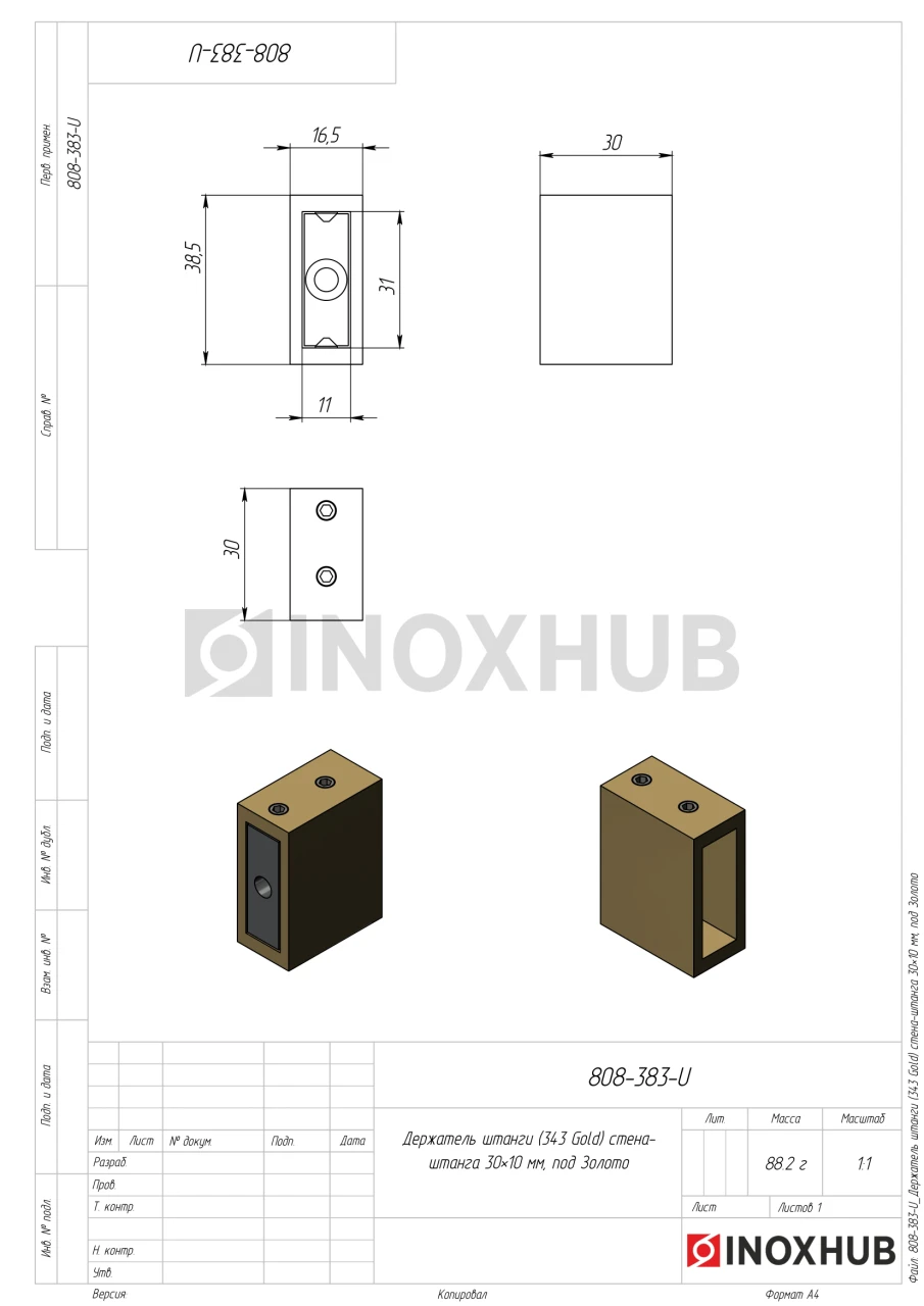 Держатель штанги (343 Gold) стена-штанга 30×10 мм, под Золото