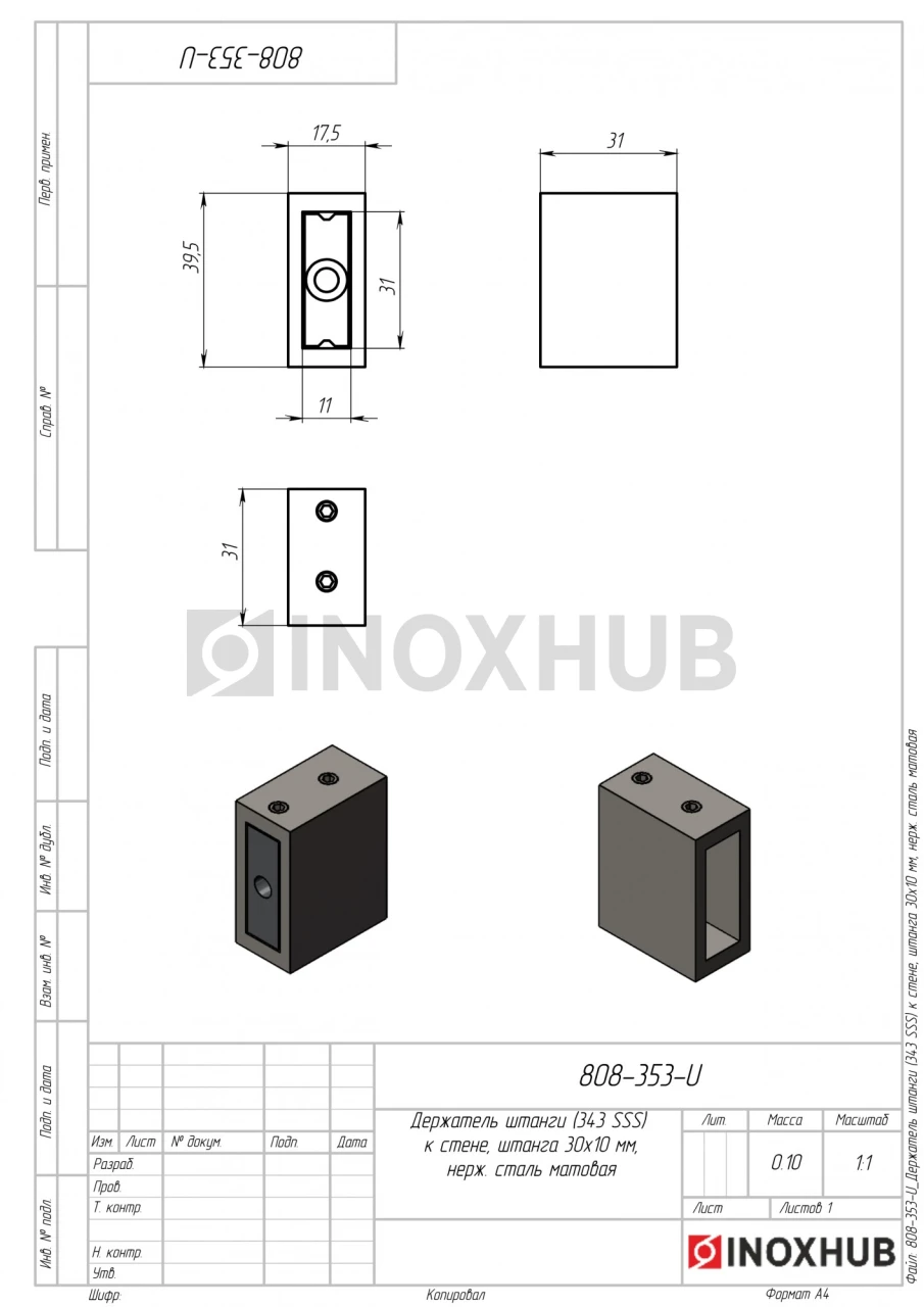 Держатель штанги стена-труба для прямоугольного трека 30х10 мм. Материал — нержавеющая сталь AISI 304. Держатель устойчив к коррозии, перепадам температур, воздействию влаги. Матовая поверхность придает изделию стильный вид, сохраняет эстетичность в течение всего срока эксплуатации.