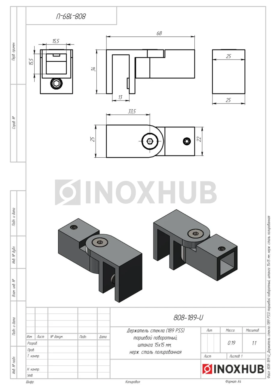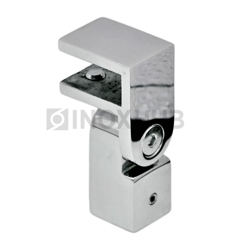Держатель стекла (189 PSS) торцевой поворотный, штанга 15×15 мм, нерж. сталь полированная