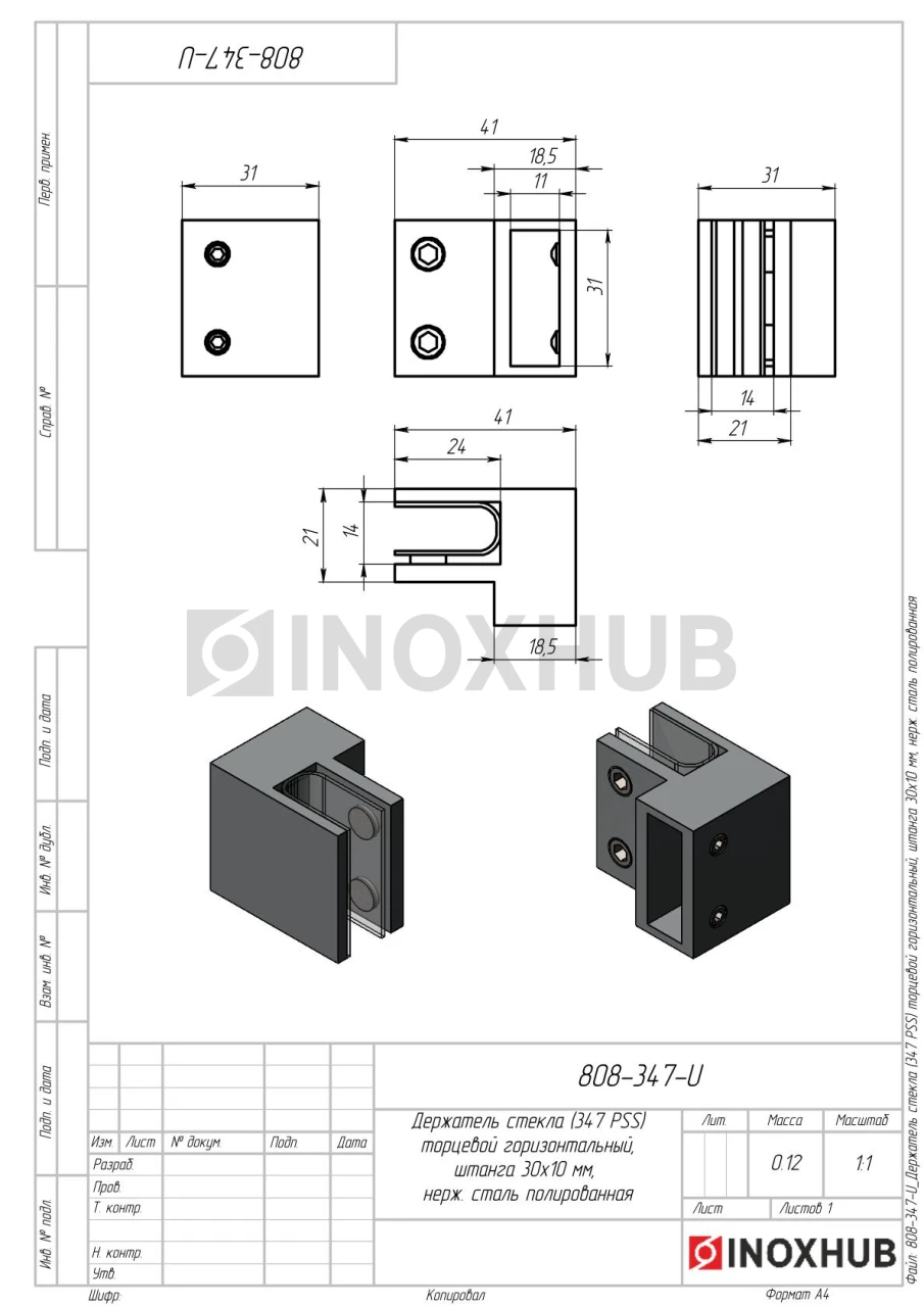 Торцевой держатель стекла для штанги 30х10 с прямоугольным сечением. Изготовлен из нержавеющей стали AISI 304. Коннектор имеет высокую устойчивость к коррозии, воздействию моющих средств, высокой влажности, перепадам температур. Полированная поверхность с глянцевым блеском сохраняет эстетичность в течение всего срока эксплуатации.