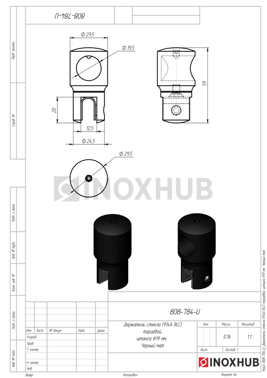 Держатель стекла (914А BLC) торцевой, штанга Ø19 мм, Черный мат
