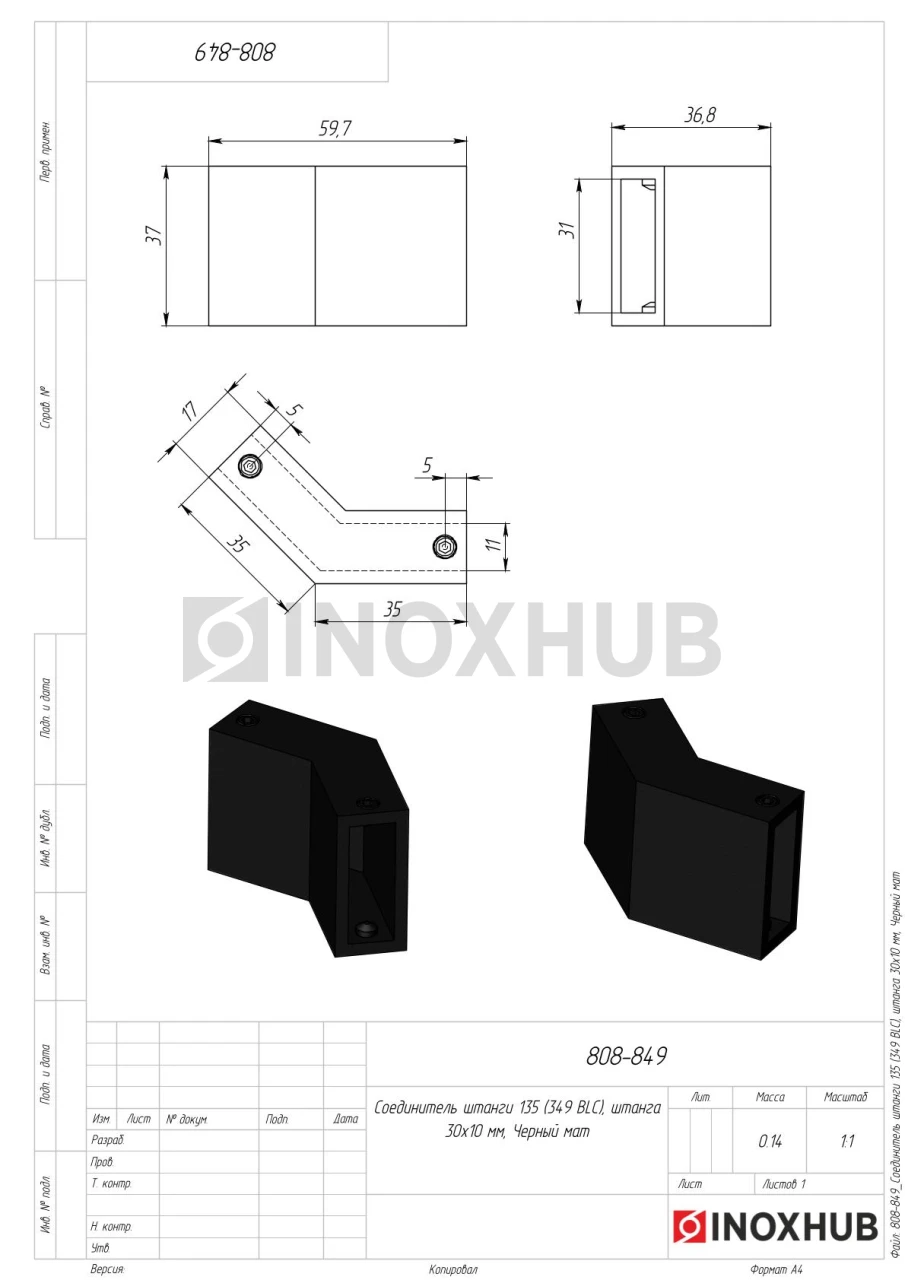 Соединитель штанги 135* (349 BLC), штанга 30×10 мм, Черный мат