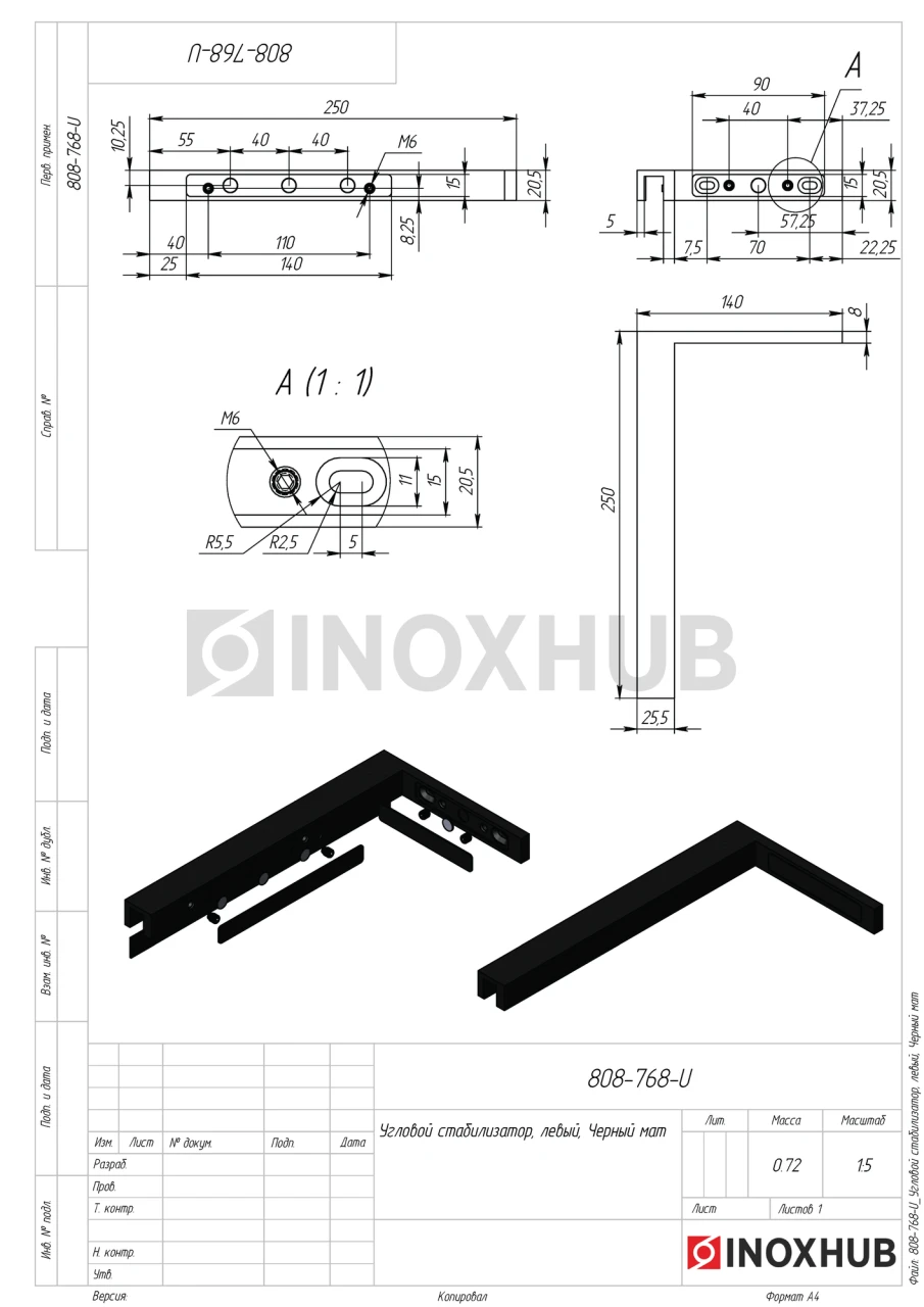 Угловой стабилизатор (BLC), левый, нерж. сталь Черный мат