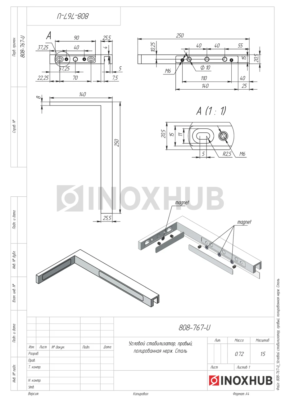 Угловой стабилизатор (PSS), правый, нерж. сталь полированная