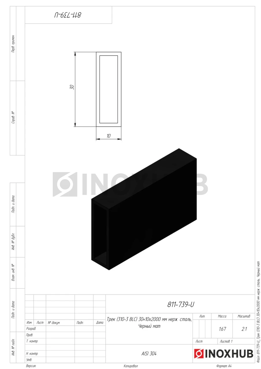 Трек (310-2 BLC), 30×10×2000 мм, нерж. сталь Черный мат