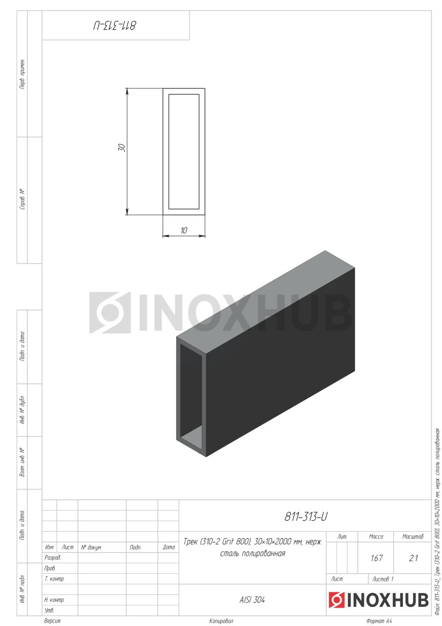 Трек (310-2 Grit 800), 30×10×2000 мм, нерж. сталь полированная