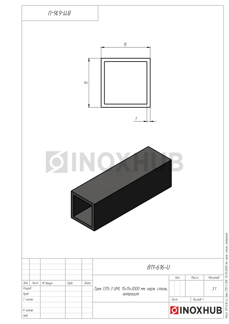 Трек (315-3 GM), 15×15×3000 мм, нерж. сталь, антрацит