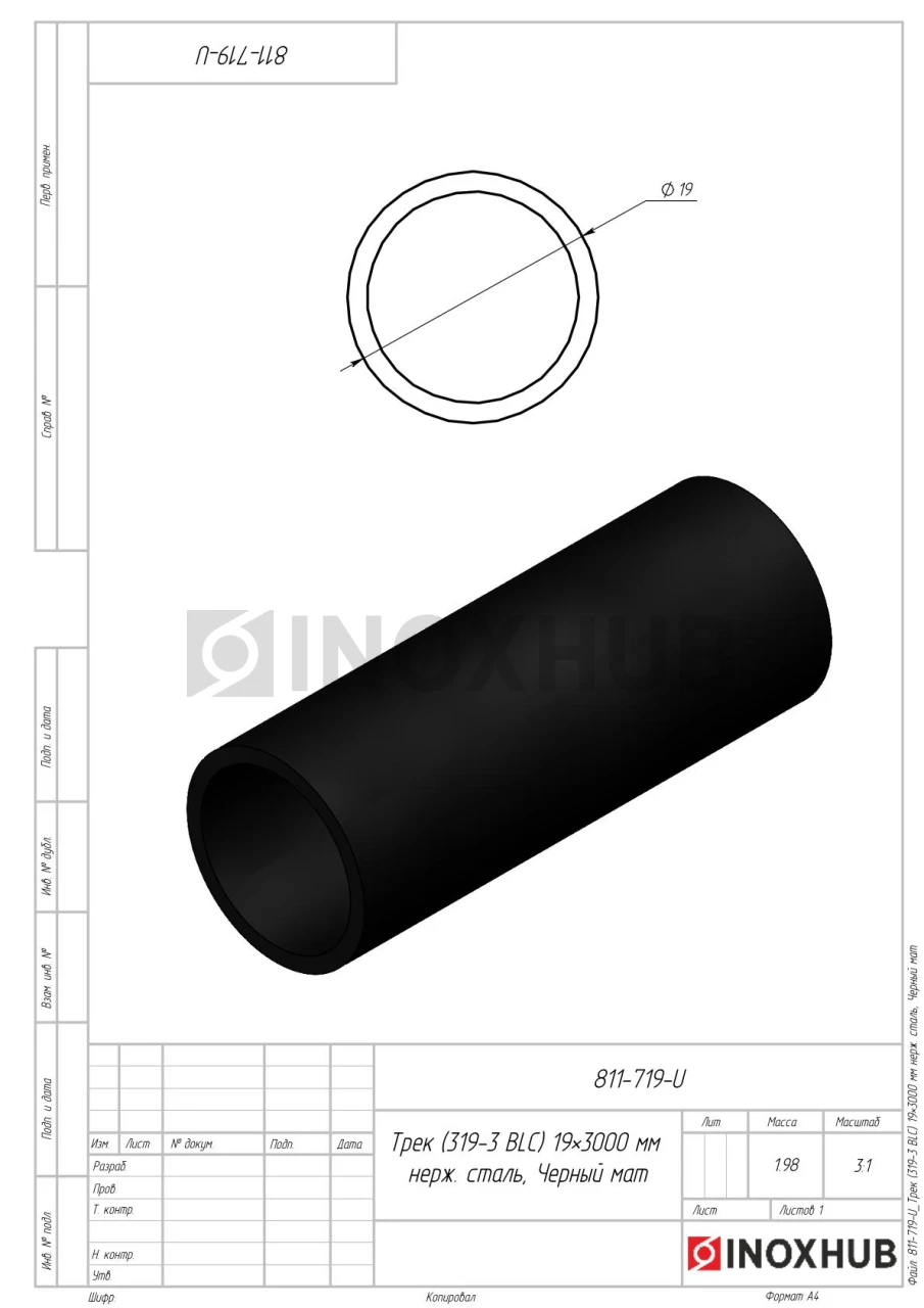 Трек (319-3 BLC), 19×3000 мм, нерж. сталь Черный мат