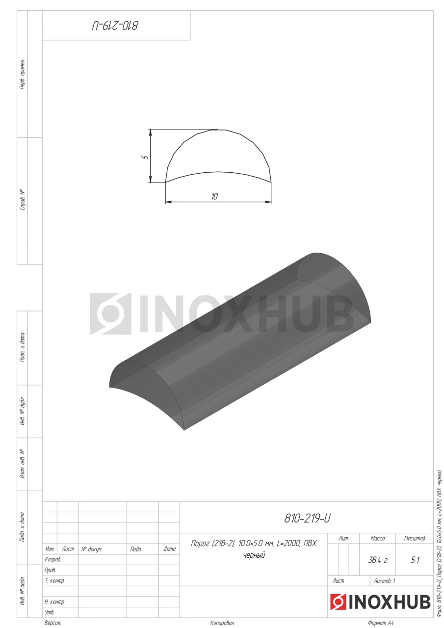 Порог (218-2), 10.0×5.0 мм, L=2000, ПВХ черный