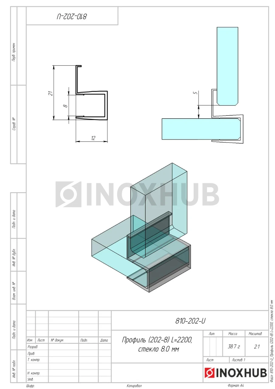 Профиль (202-8), L=2200, стекло 8.0 мм