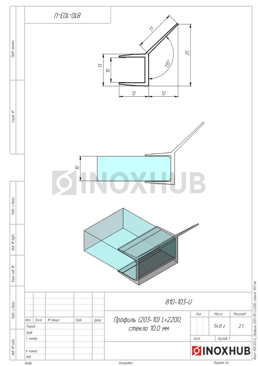 Профиль (203-10), L=2200, стекло 10.0 мм, ПВХ прозрачный
