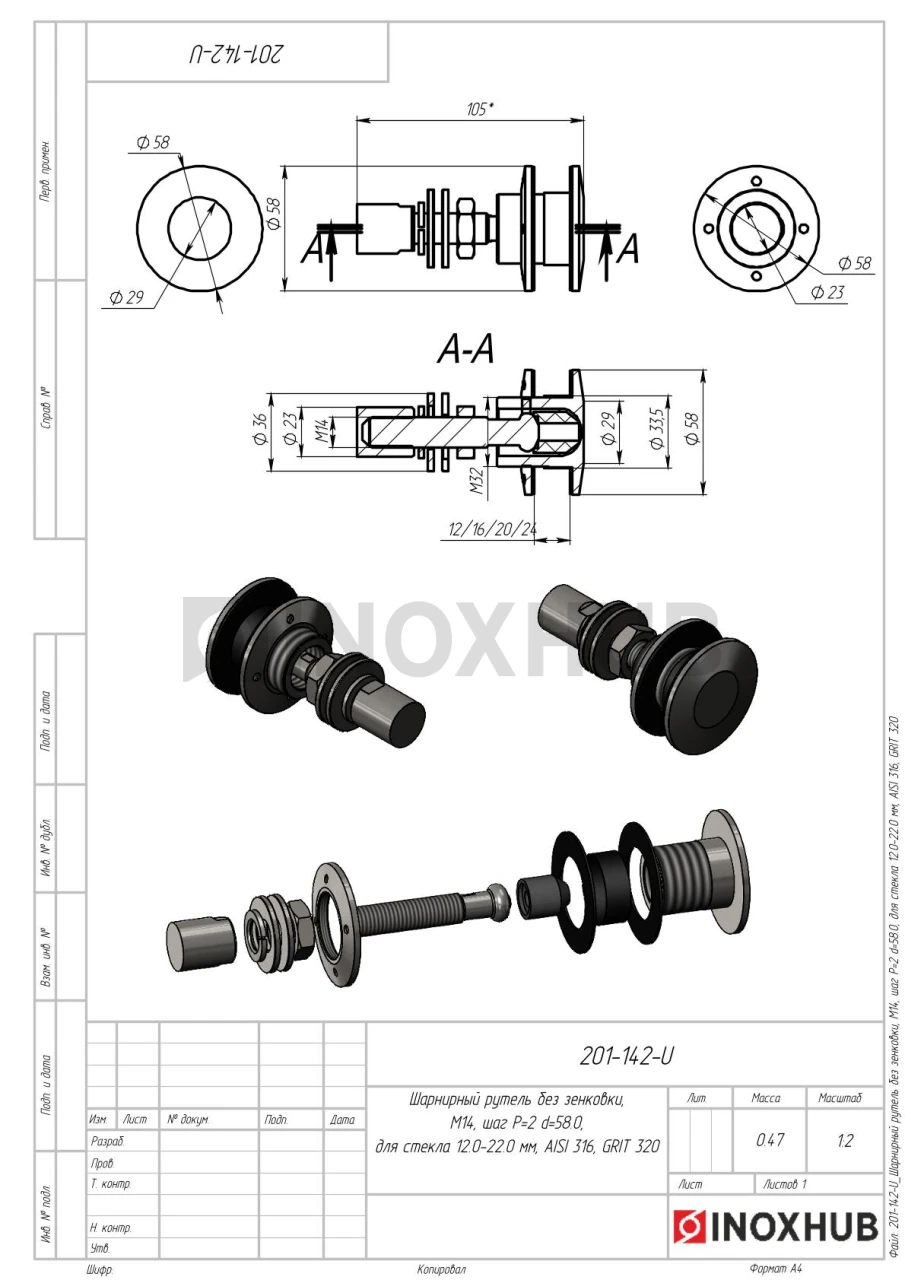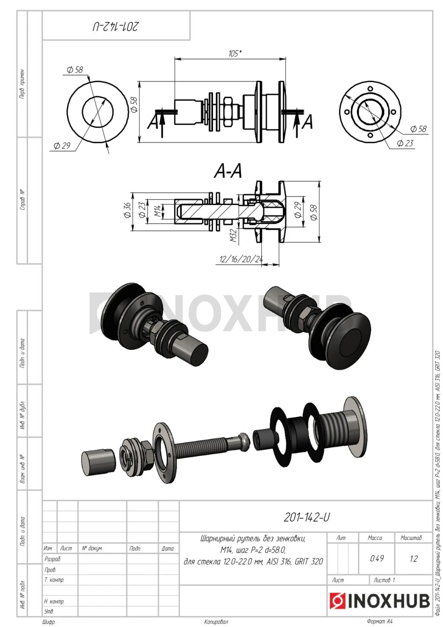 Шарнирный рутель без зенковки, М14 шаг Р=2 d=58.0, стекло 12.0-22.0 мм, AISI 316, GRIT 320 в продаже от 1 523 ₽/шт руб. Оперативная доставка со склада в Москве. Все товары соответствуют стандартам качества.